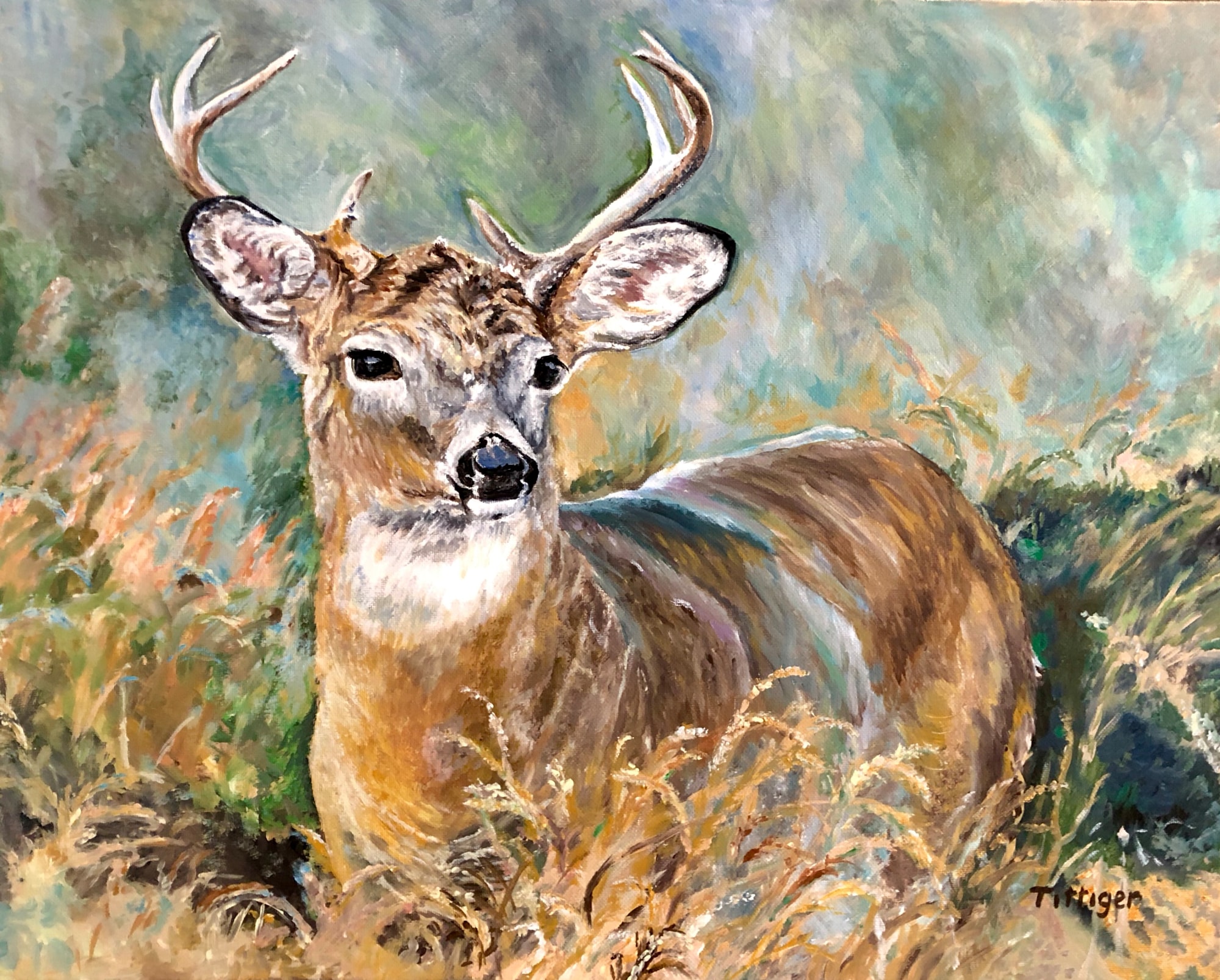 This is a beautiful painting of a buck. He just standing so still among the fall grass. I love all the colors. I grew up in the country so this painting brings back many memories of all the wildlife in the area.