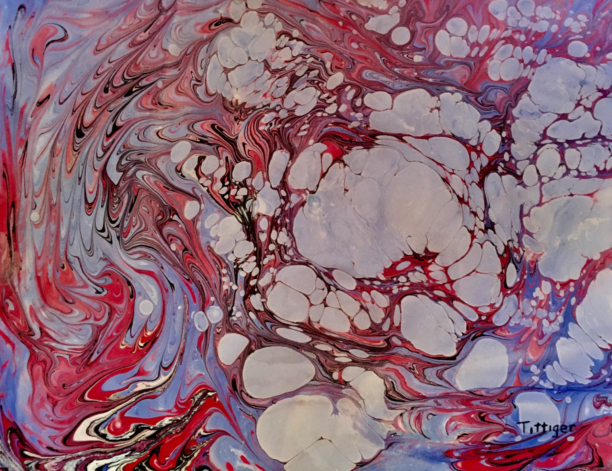 This is an Acrylic Marbling ready to be matted and framed. It reminds me of the bubbles when you are under water and how the water swirls around you.