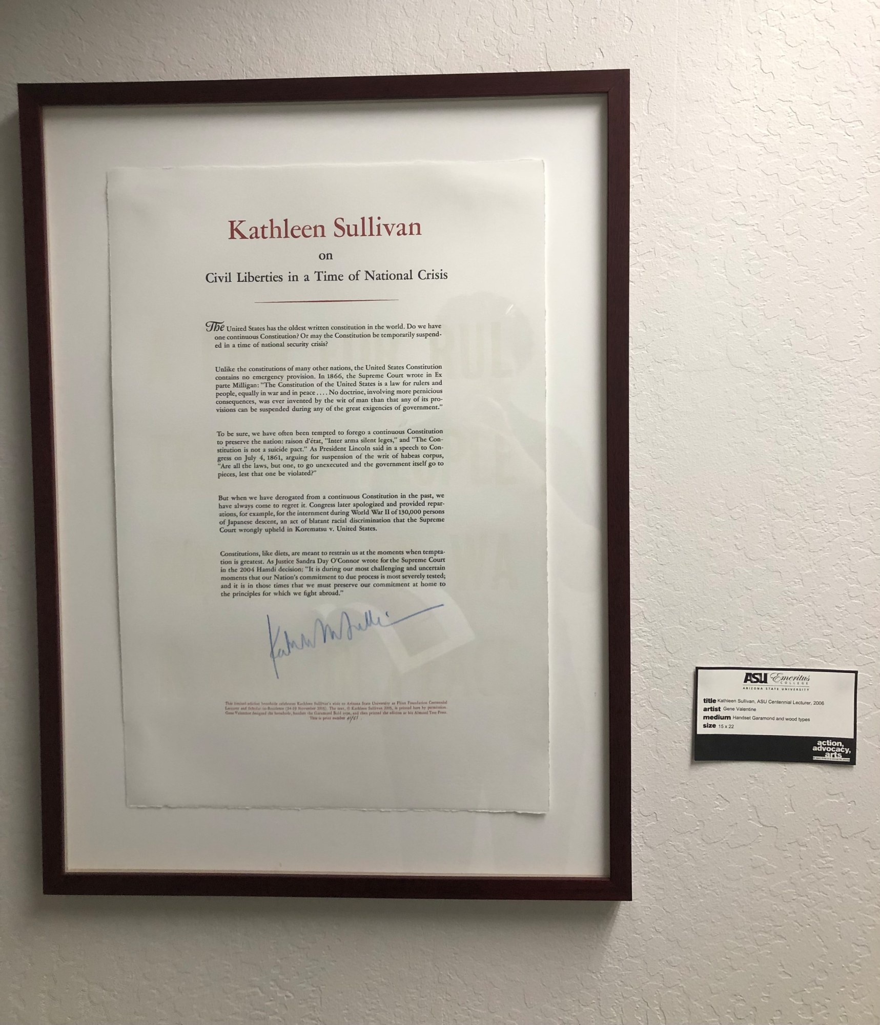 Kathleen Sullivan, ASU Centennial Lecturer, 2006 Handset Garamond and wood types; three colors; four press runs on Somerset Velvet sheets