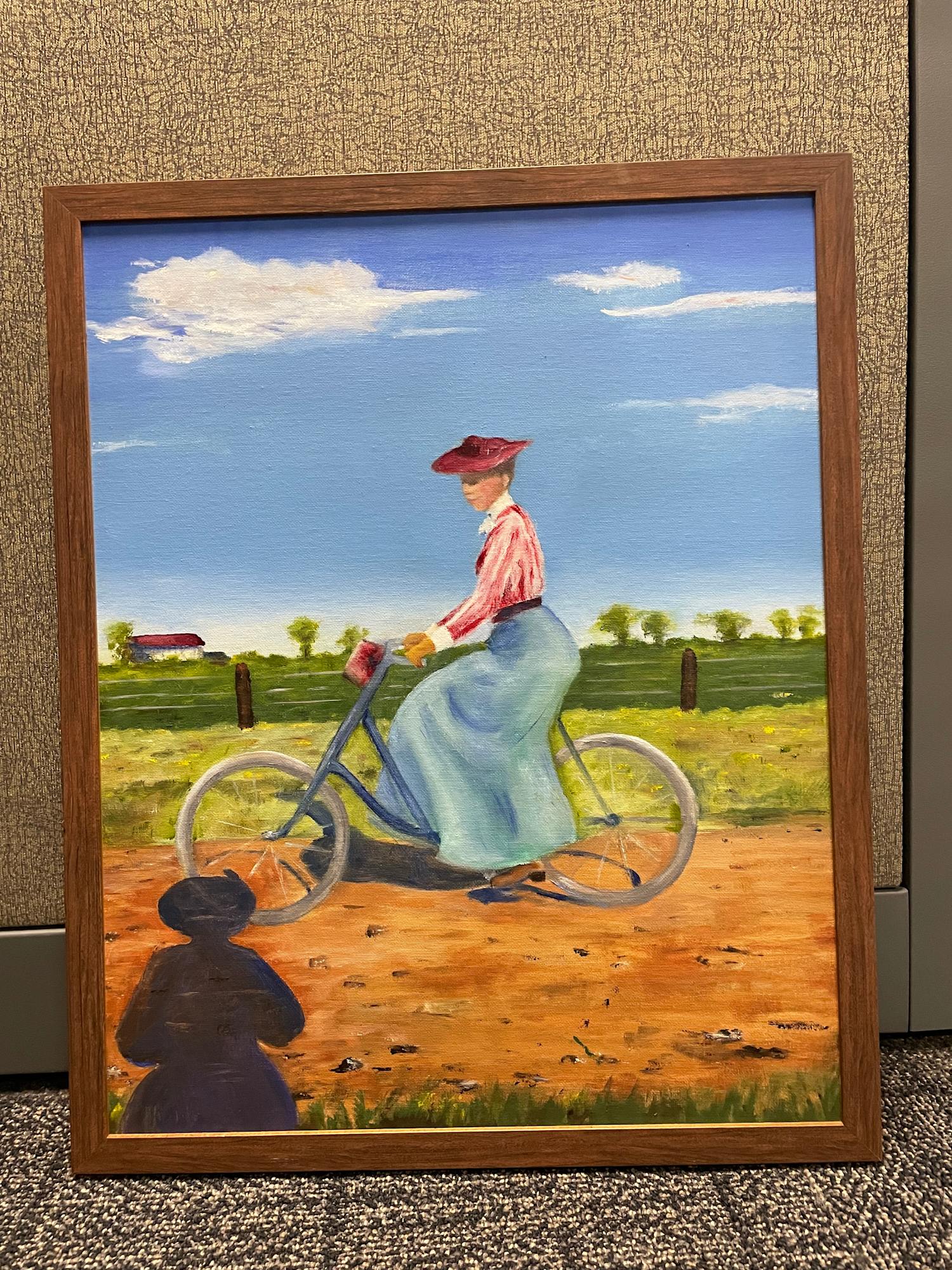 This painting is based on an old black and white photo taken by a friend (in shadow). It resonated with me because I biked to ASU for the years I worked there.