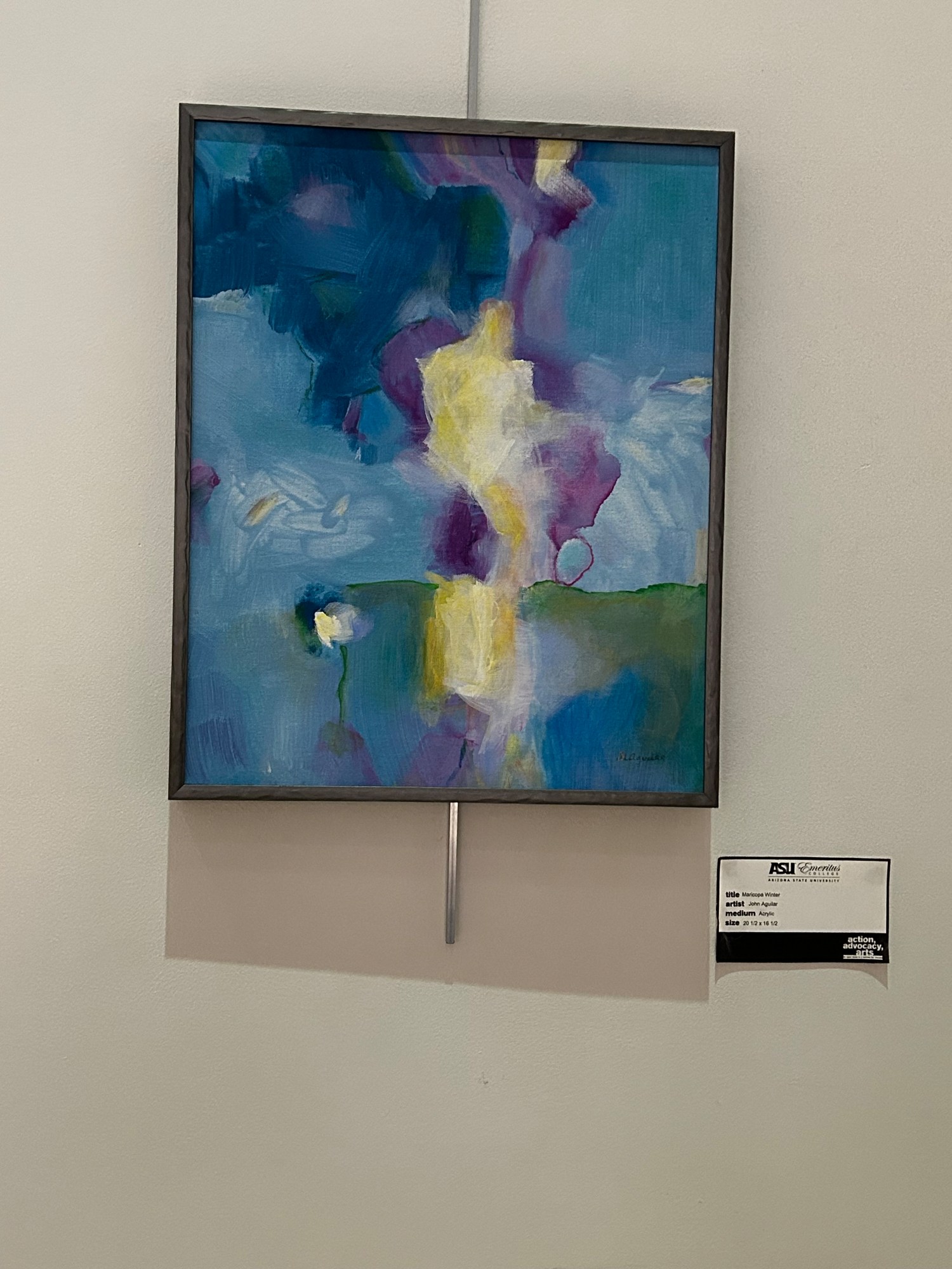 Abstract painting in mainly blue and purple, acts as the companion piece to Maricopa Summer.