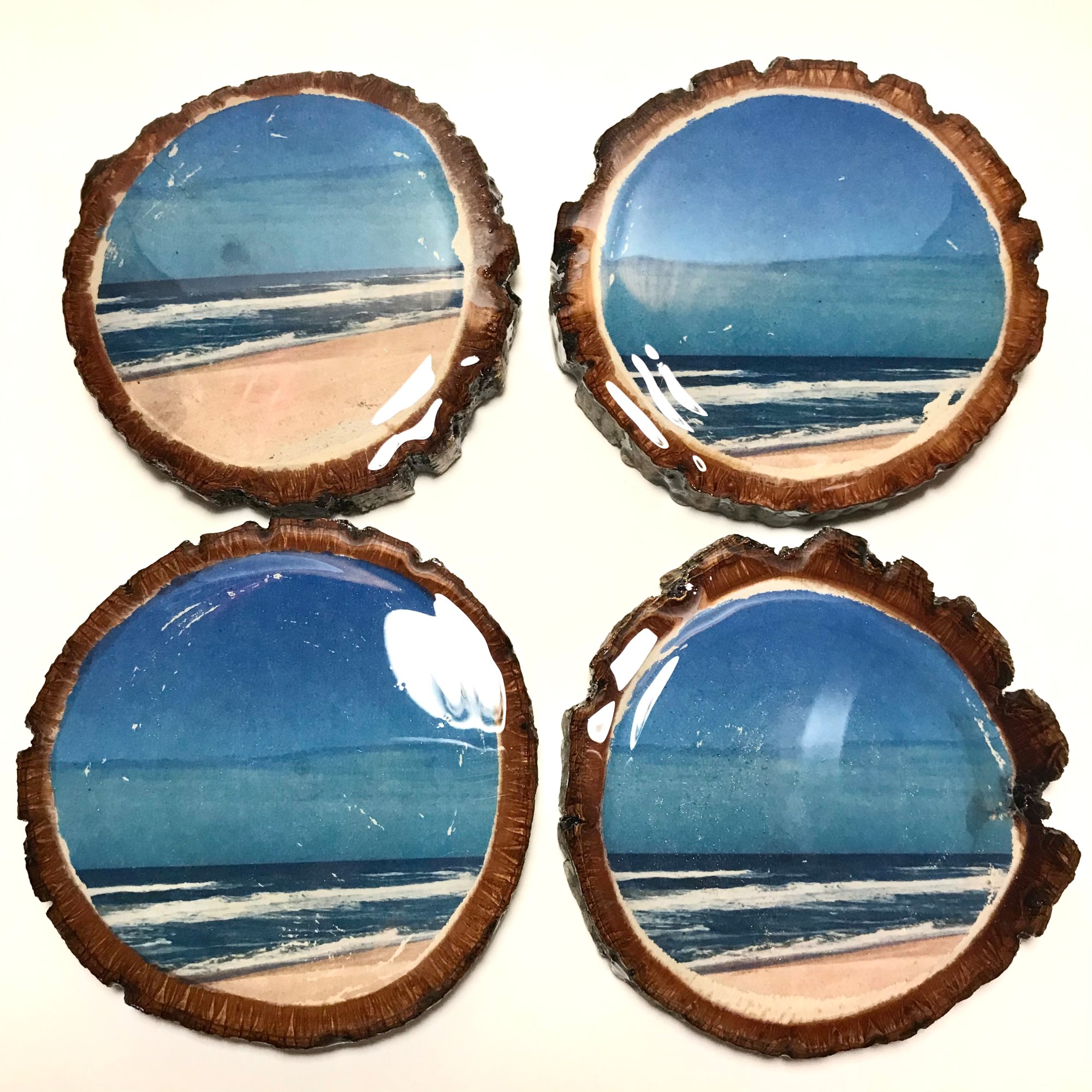 live edge wood round with image of Jacksonville Beach coated in resin