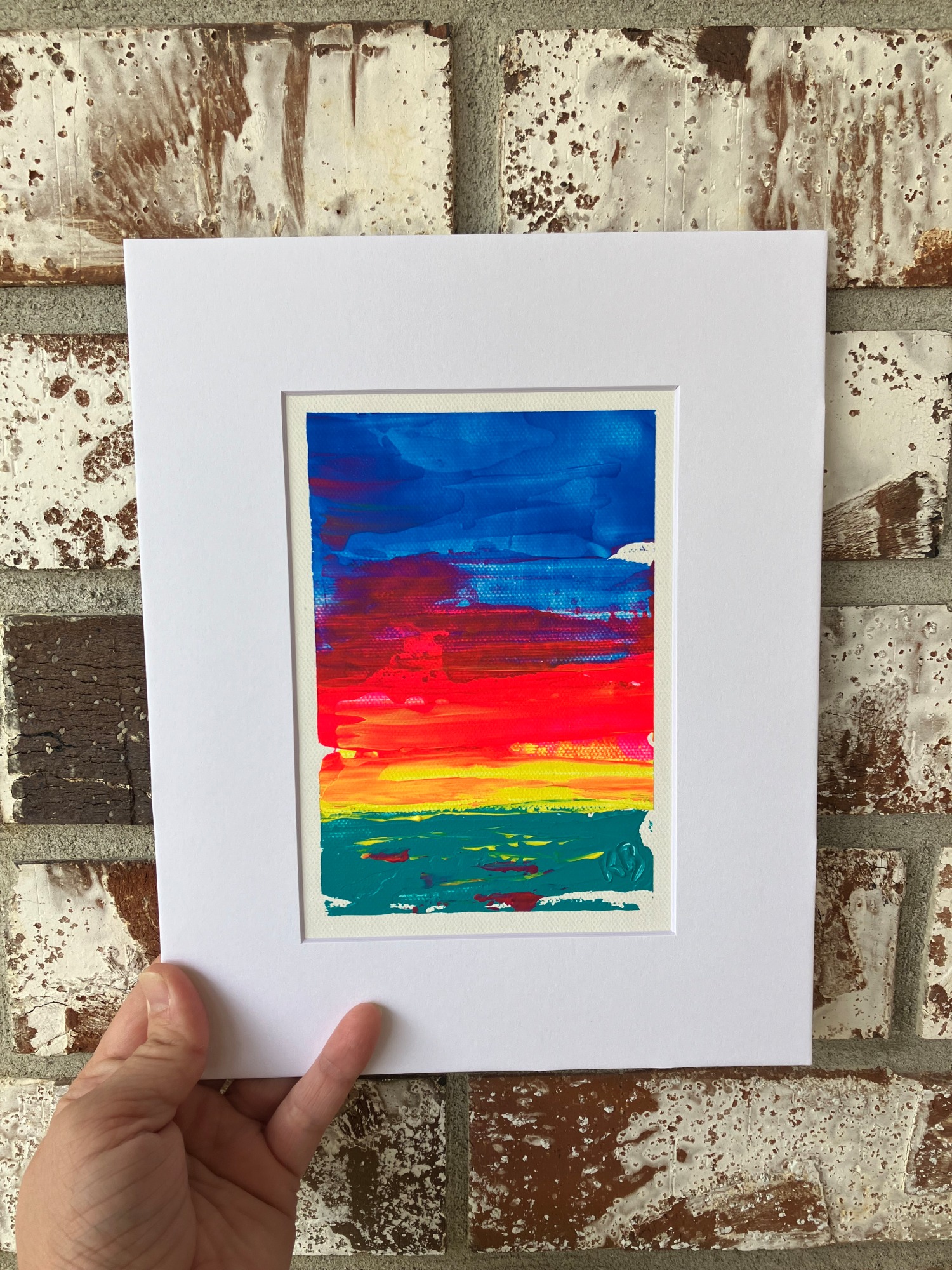 Introducing "Where the Sky Meets the Sea no. 27" - an exquisite addition to our fine art collection. This coastal seascape is a vibrant and abstract representation of the meeting point between the sky and the sea. The piece is created using acrylic on a 5 x 7 inch canvas and is matted to 8 x 10, making it ready to frame and display in your home. As part of the unique "Where the Sky Meets the Sea" series, this artwork captures the beauty and tranquility of the coastal landscape in a truly exceptional way. Whether you're a connoisseur of fine art or simply looking for a stunning piece to elevate your space, "Where the Sky Meets the Sea no. 27" is sure to impress.