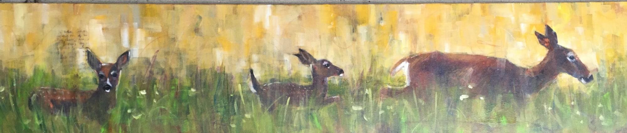 Edge of the Canola Field 12x60x1.5 mixed media by Connie Geerts.