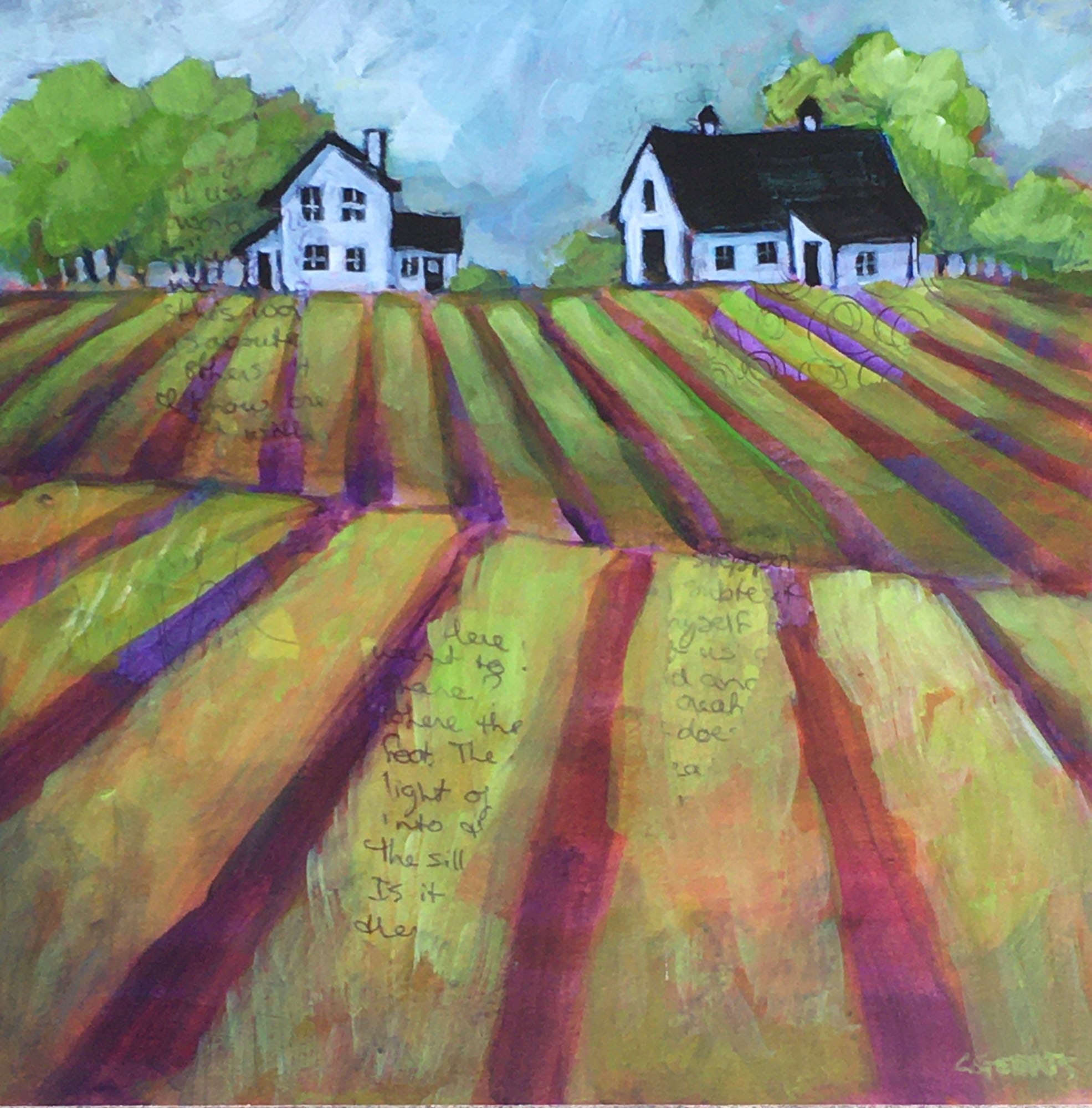 "Farm Fields" 12x12x1.5 on board - mixed media - by Connie Geerts