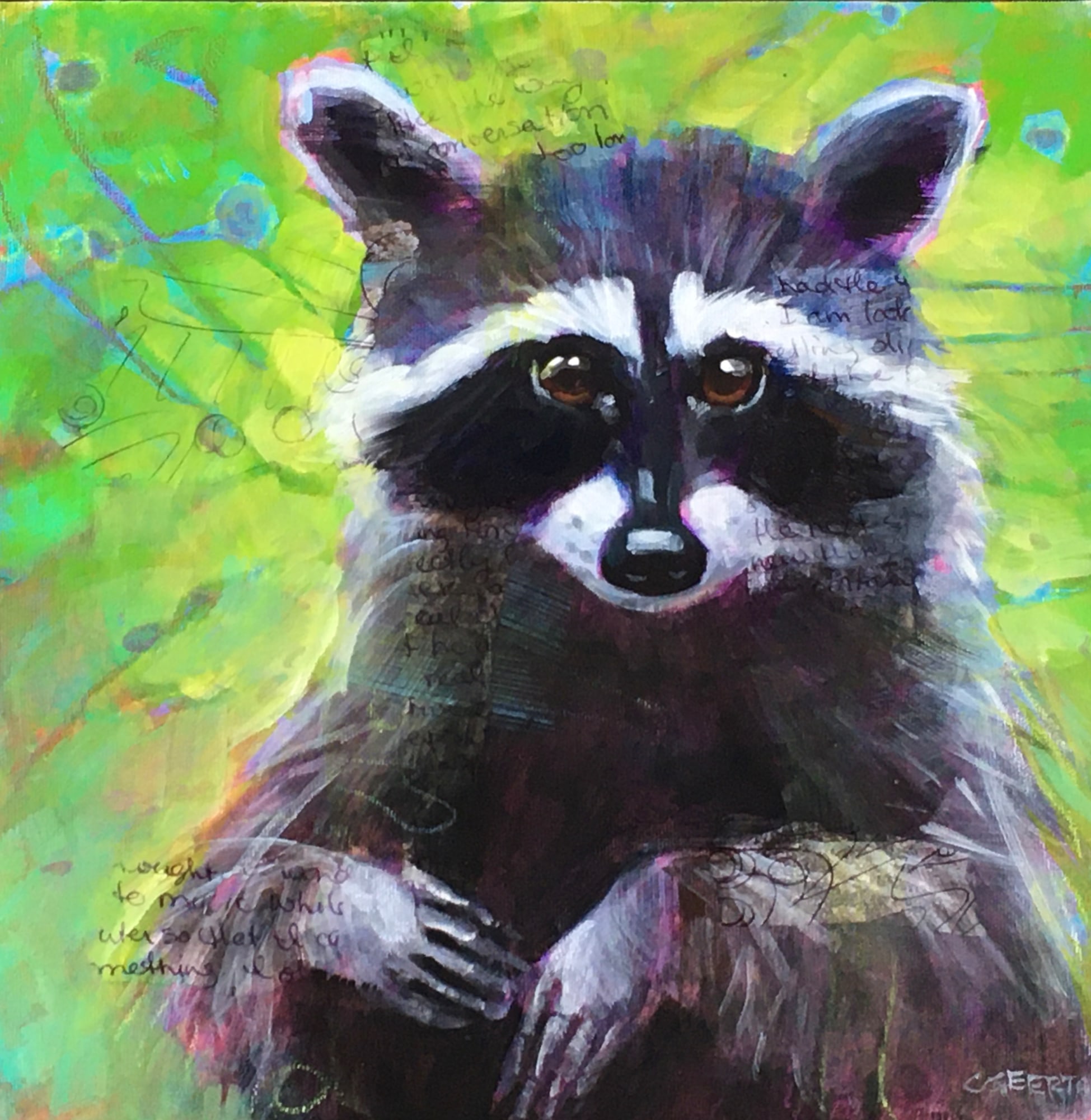 "Little Bandit" mixed media by Connie Geerts 12x12