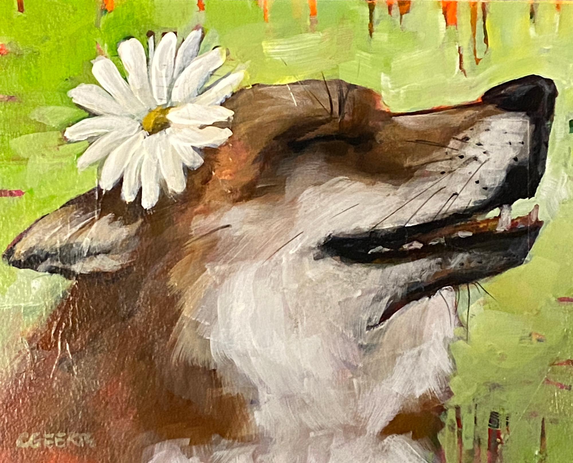 fox with flower