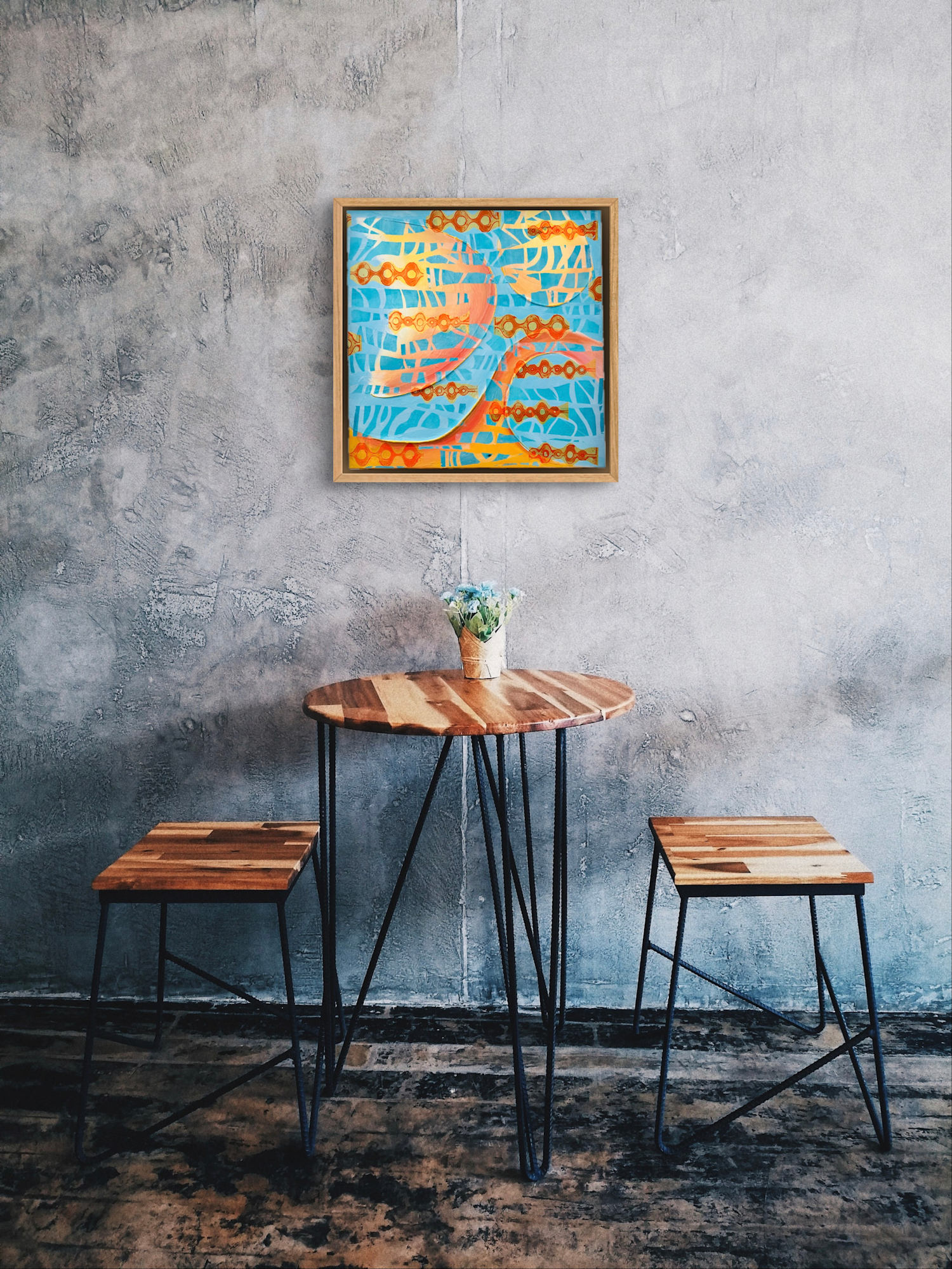 Experience the nostalgia of the 50's with a modern twist! Dive into the vibrant colors and dynamic shapes of our splashy surf modern piece. Transform any space into a work of art that will transport you to another era.