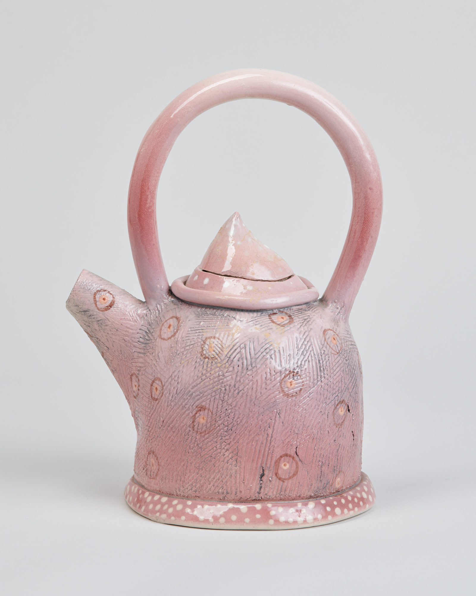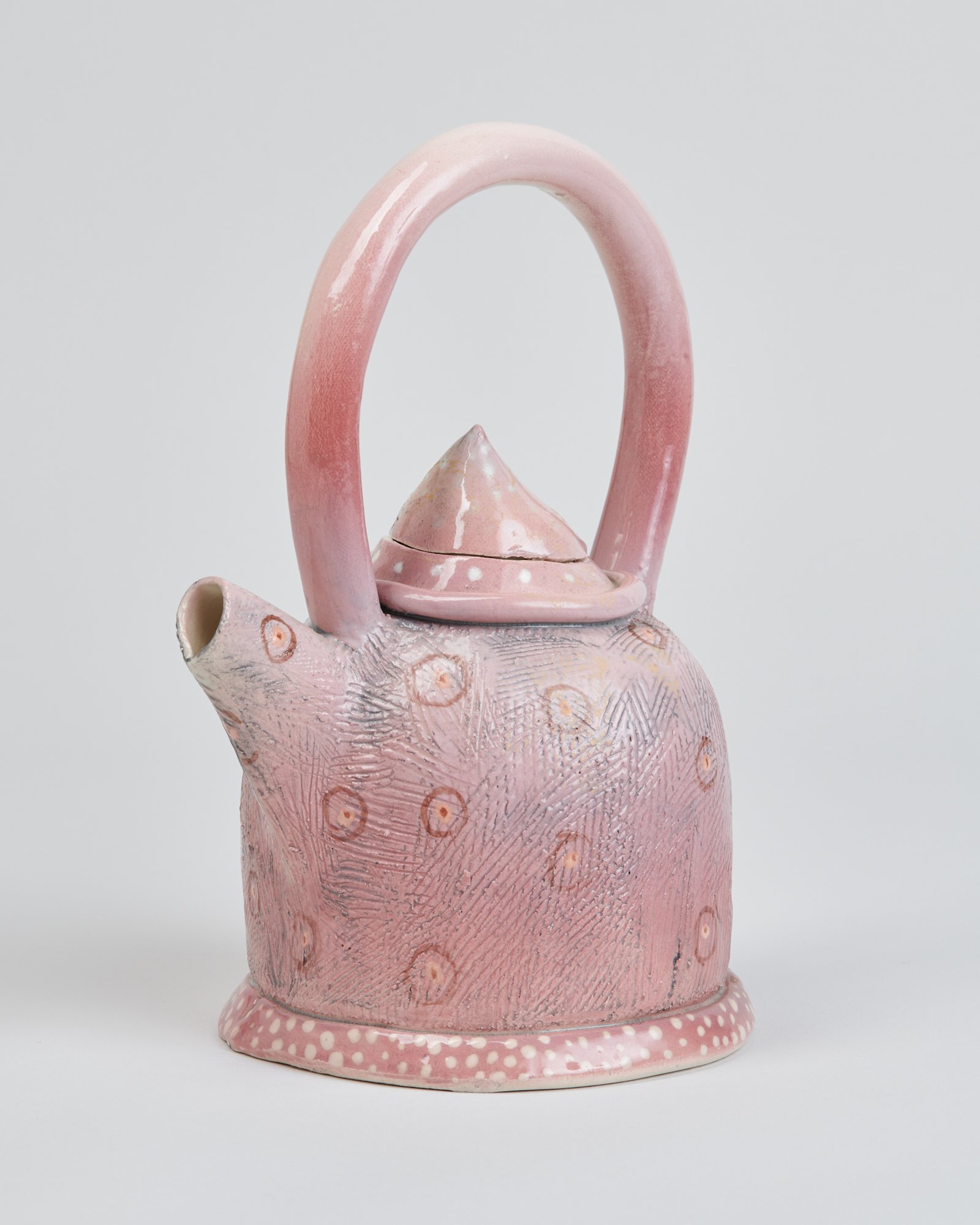 White earthenware, hand built, incised and overglazed decoration, antique finish.