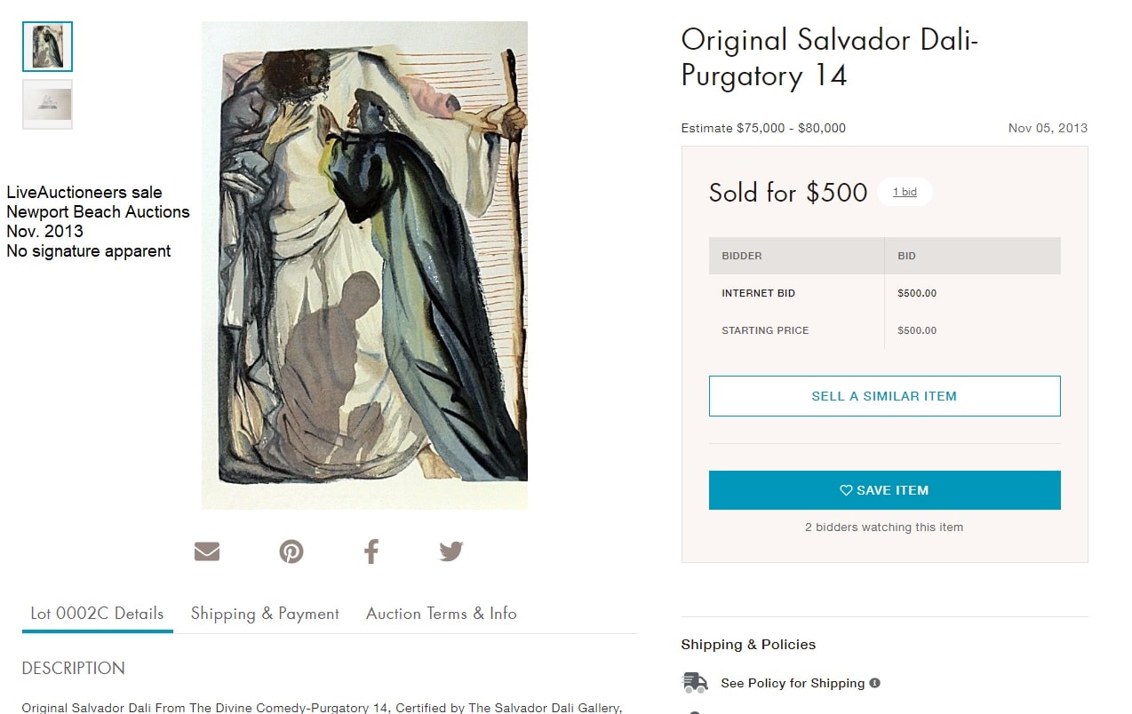 - "Ein Geist befragt Dante" (German) "The Blind for Envy" Göttliche Komödie Fegefeuer F14 by Salvador Dali #D13, 1960 to 1963 Published in 1974