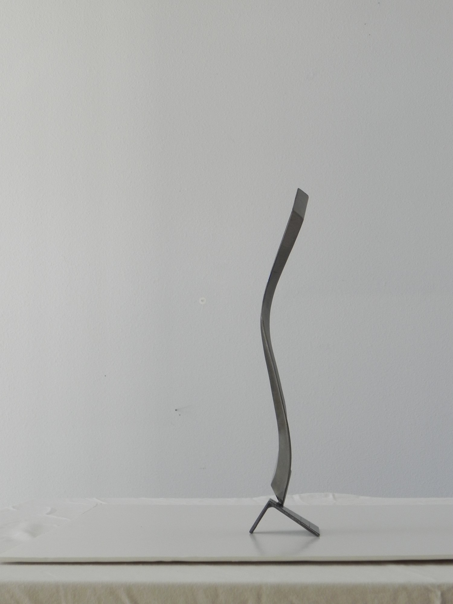The work I do today is kinetic sculpture that consists of geometric shapes which are joined and balanced so that wind alone will activate them. And there is a sort of history to the development of this current work. I began using the figure as a basis of early work and that quickly became quite abstract, but the gestural, human qualities remained. An extended period of "illusionist" sculptures played with masses that defied gravity and retained a bit of narrative quality to them as well. I became increasingly interested in the levitating appearance of discreet parts that made up the entire sculpture. I wanted to see things float and move. My last 15 years of artistic production have been devoted to making my art practice as precise, visually satisfying, seductive and, well, yes, beautiful as I can achieve.