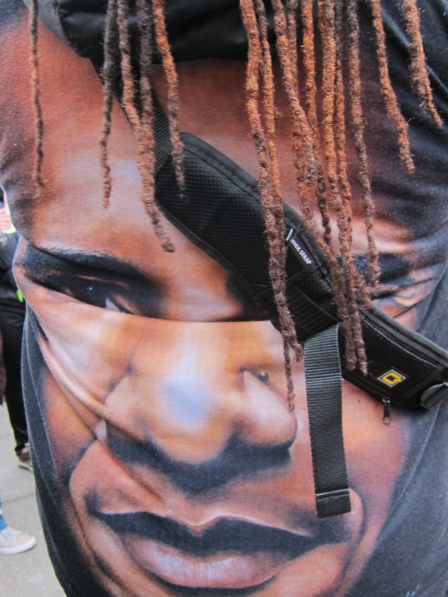 stained Queen-sized bed sheets. The quilts are born on protester’s backs to demonstrate an