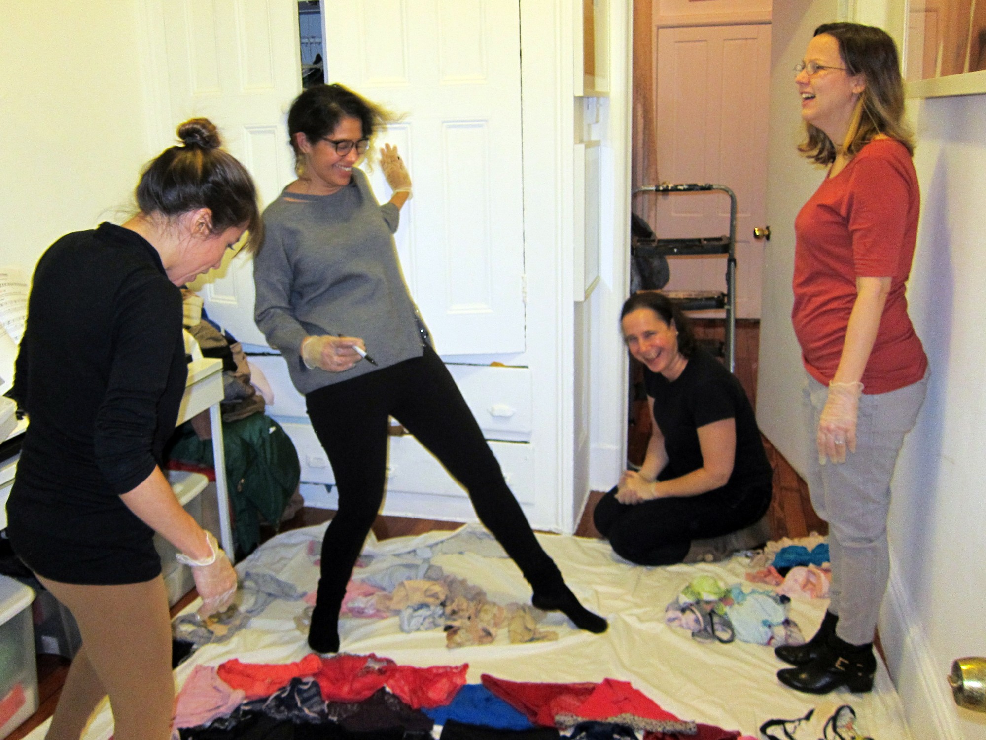 collecting worn-out women’s underwear to sew into arpilleras called Cunt Quilts at quarterly Stitch n Bitch
