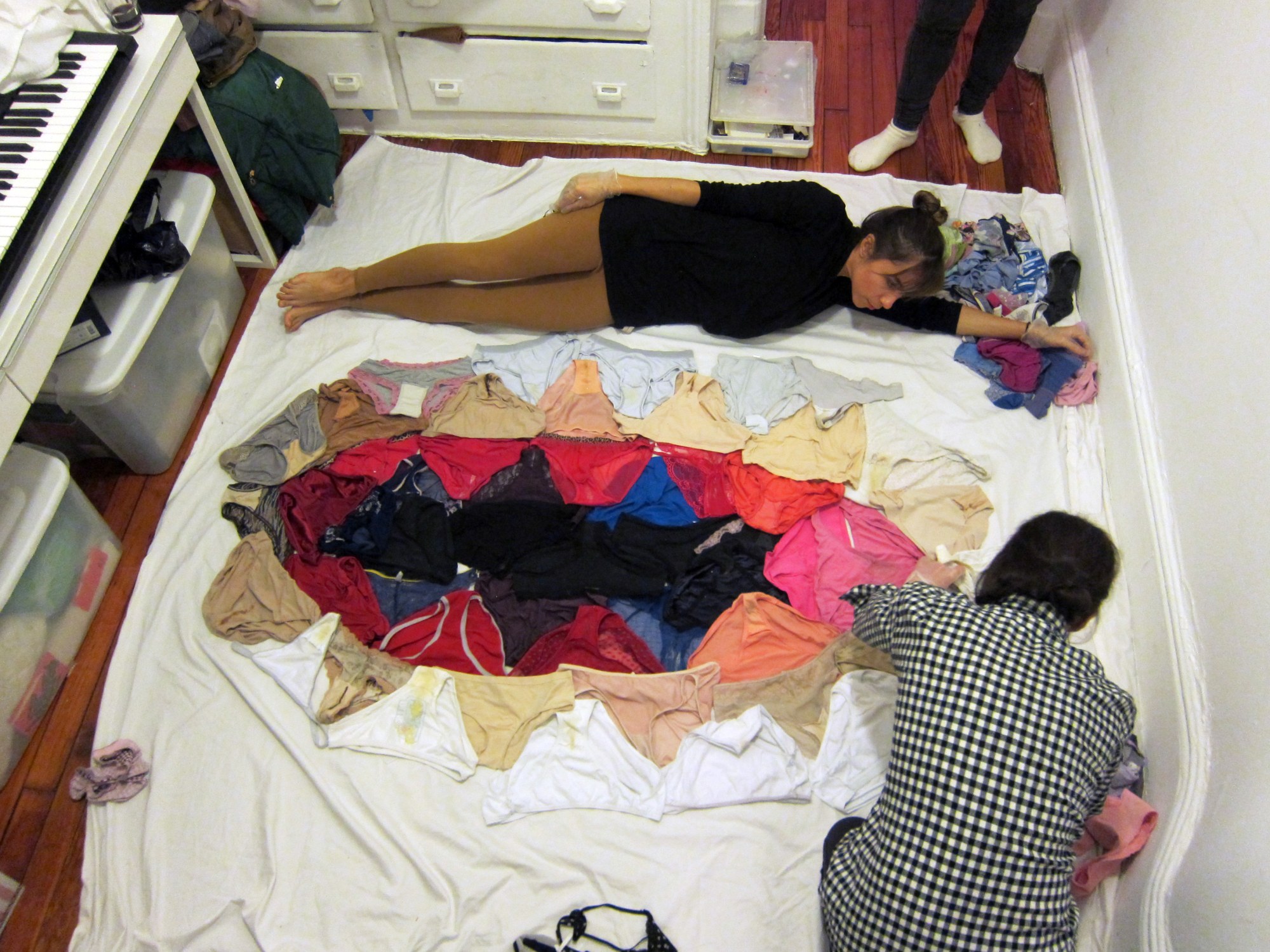 After the 2016 US presidential election artist Coralina Rodriguez Meyer issued a National Underwear Audit to request worn out women's underwear to be mailed through the US Postal Service: "Give me your tired, your poor, your huddled drawers, yearning to breathe free! No matter the condition- they’ll be a revelation of the shameful, the sanitized, the washed-up, the worn, the probed, the holy, the scarlet, the loosened, the exonerated, the secret, and the secreted."