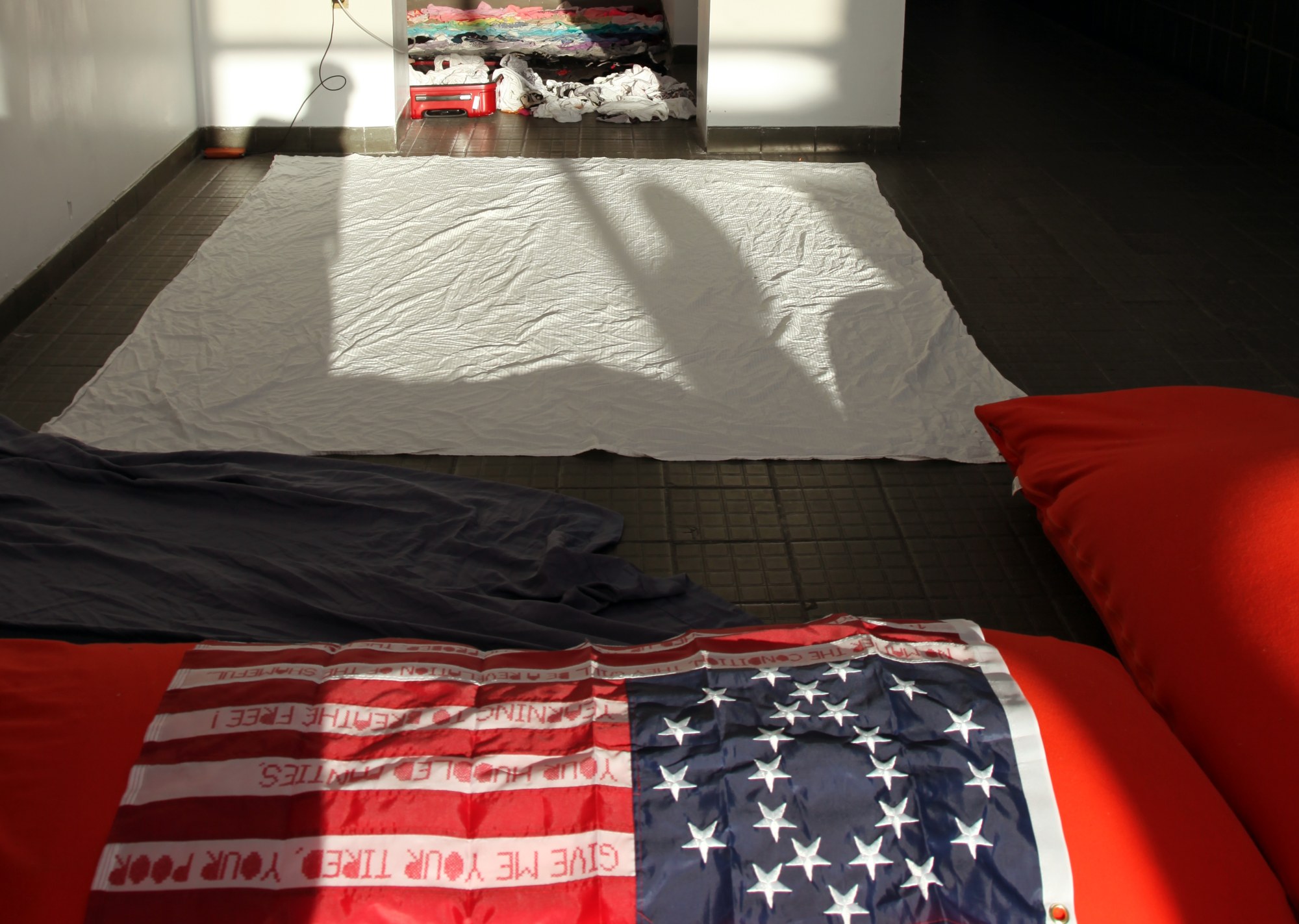 The Old Glory Underwear Audit lead to an Inaugural Stitch n Bitch at the City of Today for Feminine Urbanism studio in Greenpoint, Brooklyn. A gathering of ladies from different intersectional feminist backgrounds began pinning discarded drawers onto a used bedsheet the evening of January 18, 2017. Late Friday night I finished stitching the sullied skivvies and shoved the Inaugural Cunt Quilt into a carry-on suitcase, headed for the nation’s capital to protest the inauguration of president #45. The Cunt Quilt is the official flag for the City of Today for Feminine Urbanism and will be flown at the inaugural Women’s March in January 2017. The Cunt Quilt project, consisting of the Old Glory Underwear Audit, Stitch n Bitch and Cunt Congress will continue quarterly until there is a woman in the WhiteHouse.