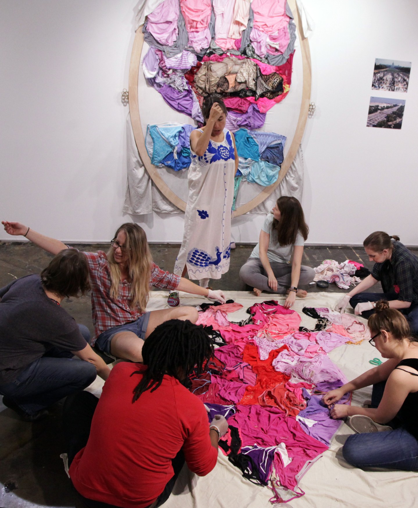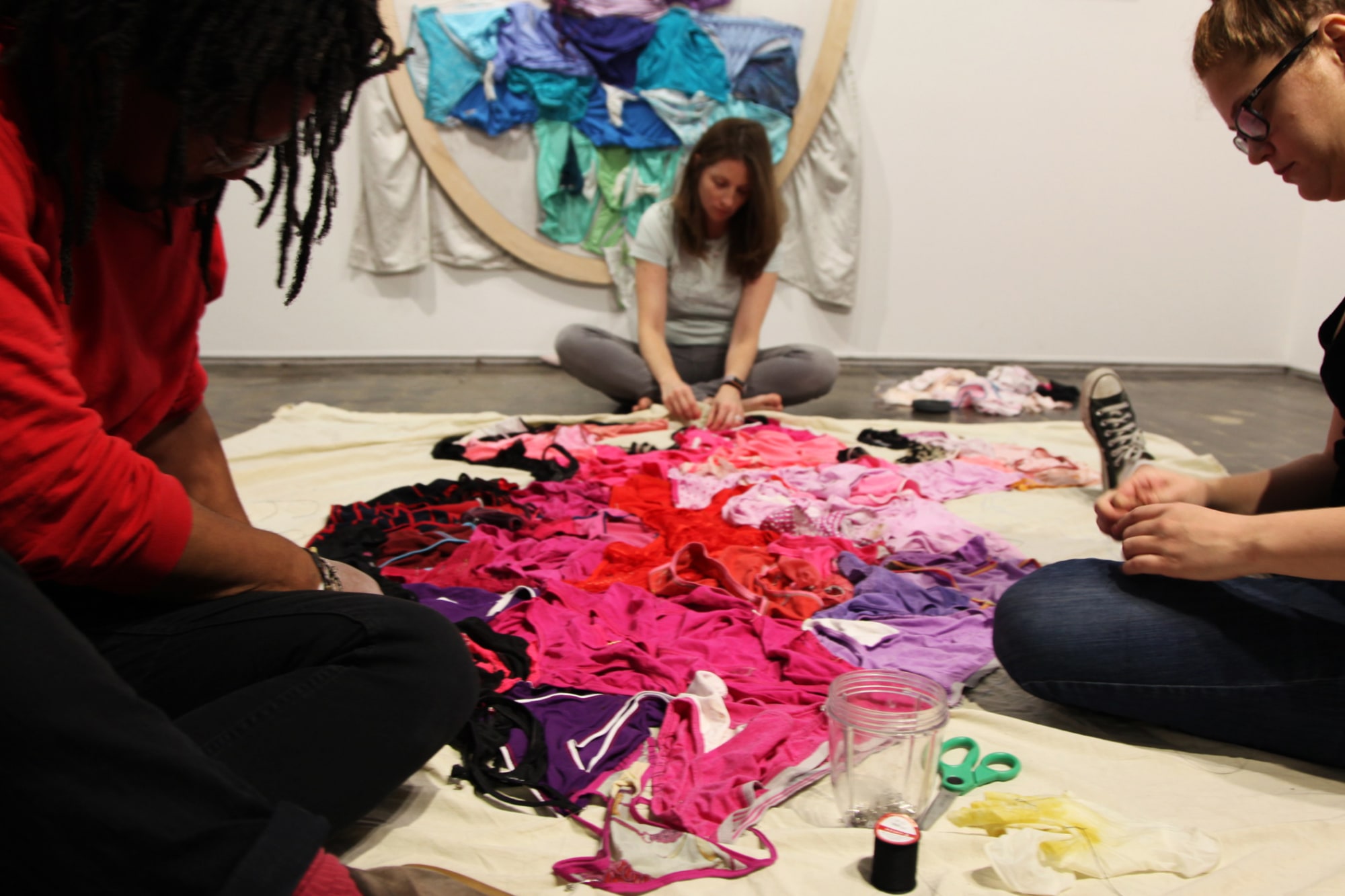 workshops. Panties were donated through the US Postal Service and sewn by feminist quilters, onto