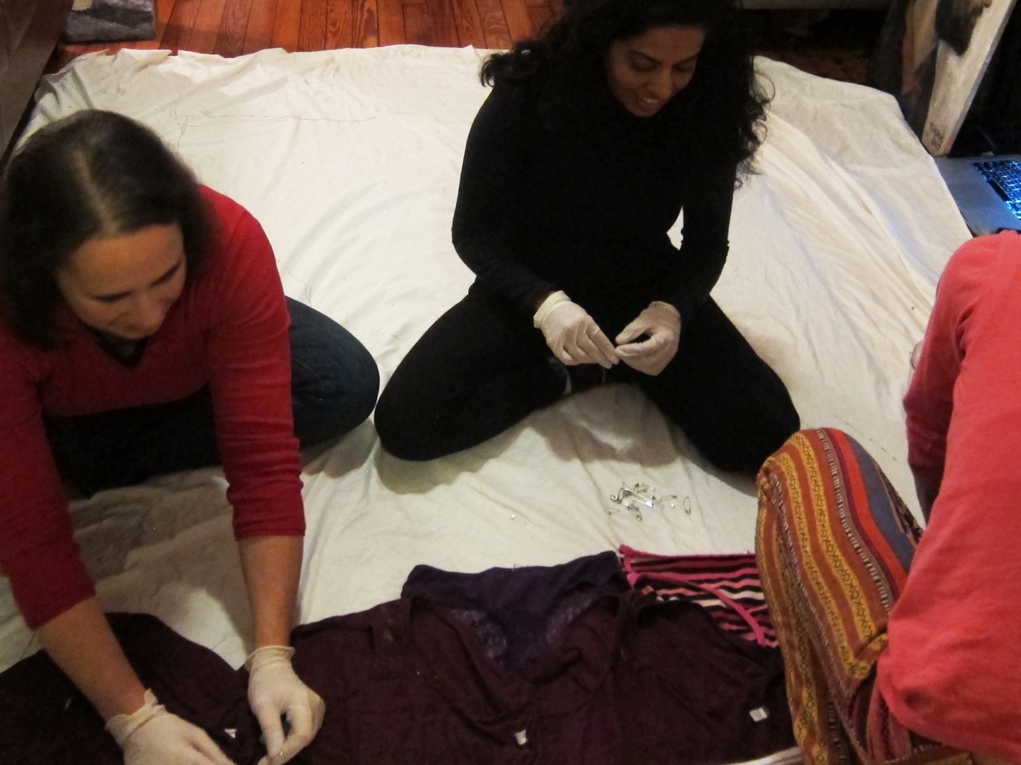 collecting worn-out women’s underwear to sew into arpilleras called Cunt Quilts at quarterly Stitch n Bitch