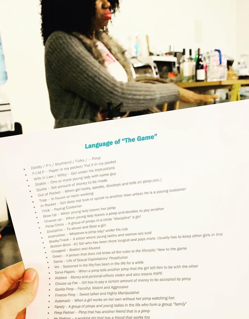 Arpillera salon Stitch n Bitch (Traffic) in the Textile Factory downtown LA January 18, 2019 where participants create a Cunt Quilt Arpillera Americanx to end human trafficking after a discussion lead by Cherise Charleswell, director of Journey Out an organization that empowers trafficking survivors with life saving resources.