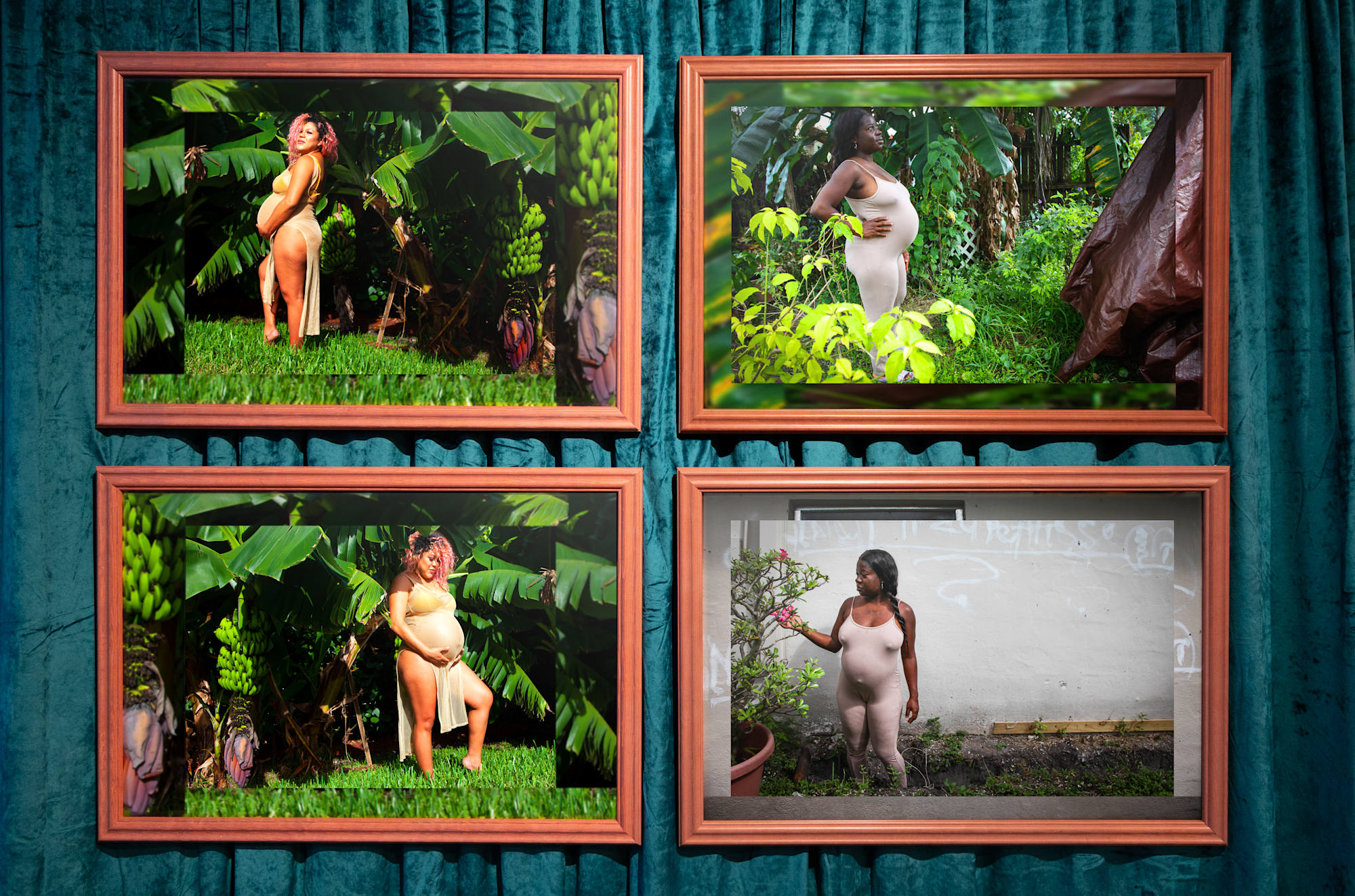 Conceived as a sanctuary structured in three distinct trimesters, the exhibition unfolds as a journey through bodily and cultural memory. At its center, Cenote Yemaya serves as the exhibition’s navel—a large-scale video installation mapping sacred water bodies from the Caribbean to New York, projected onto a Mother Mold fertility effigy. Cast from pregnant bodies and composed of materials including discarded medical latex gloves, hair, nails, birth control packaging, botanica elements, serape fabrics, and funeral flowers, the work embodies both loss and survival. Drawing from preservation rituals such as Andean mummification, Caribbean, and Creole birthing traditions, the effigy serves as a vessel for memory, resistance, and reclamation. A parallel series, Rodriguez Meyer’s Línea Negra photography (2007–present) documents the artist’s infertility diagnosis in 2007 and her subsequent biological pregnancy after overcoming monumental institutional violence. The first trimester of the exhibition is a sterile, hospital counter. An institutional space often hostile to melanated, queer, and immigrant bodies—the first decade of photographs documents the Mama Spa Botanica workshop (2007–present), conceived in collaboration with the artist’s full spectrum neighbors. Linea Negra is the hemispheric melanin line that appears on the abdomen during pregnancy. This natural mark, most prominent in people of color, is an index—an ancestral imprint inscribed between parent and child- connecting reproductive histories across geographies, genders, and generations.