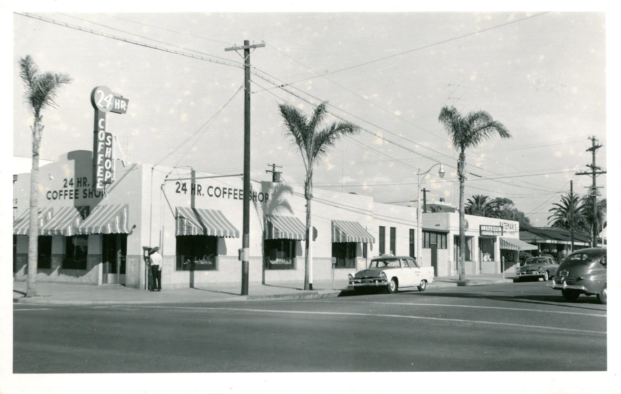 * East face: Clayton’s during its previous iteration as 24 Hr. Coffee Shop. c. 1950. Coronado Historical Association Collection. Rights reserved.