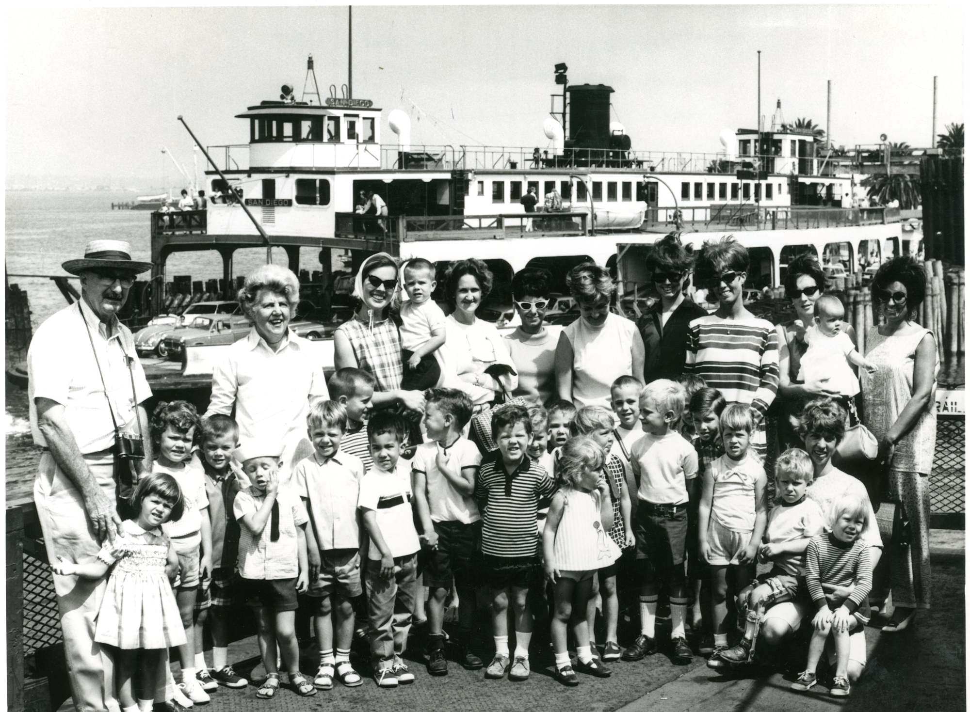 ● Southeast faces: Miss Bunny’s class taking a ride on the ferry during its last day in service. August 1, 1969. Coronado Historic Association Collection. Rights reserved.