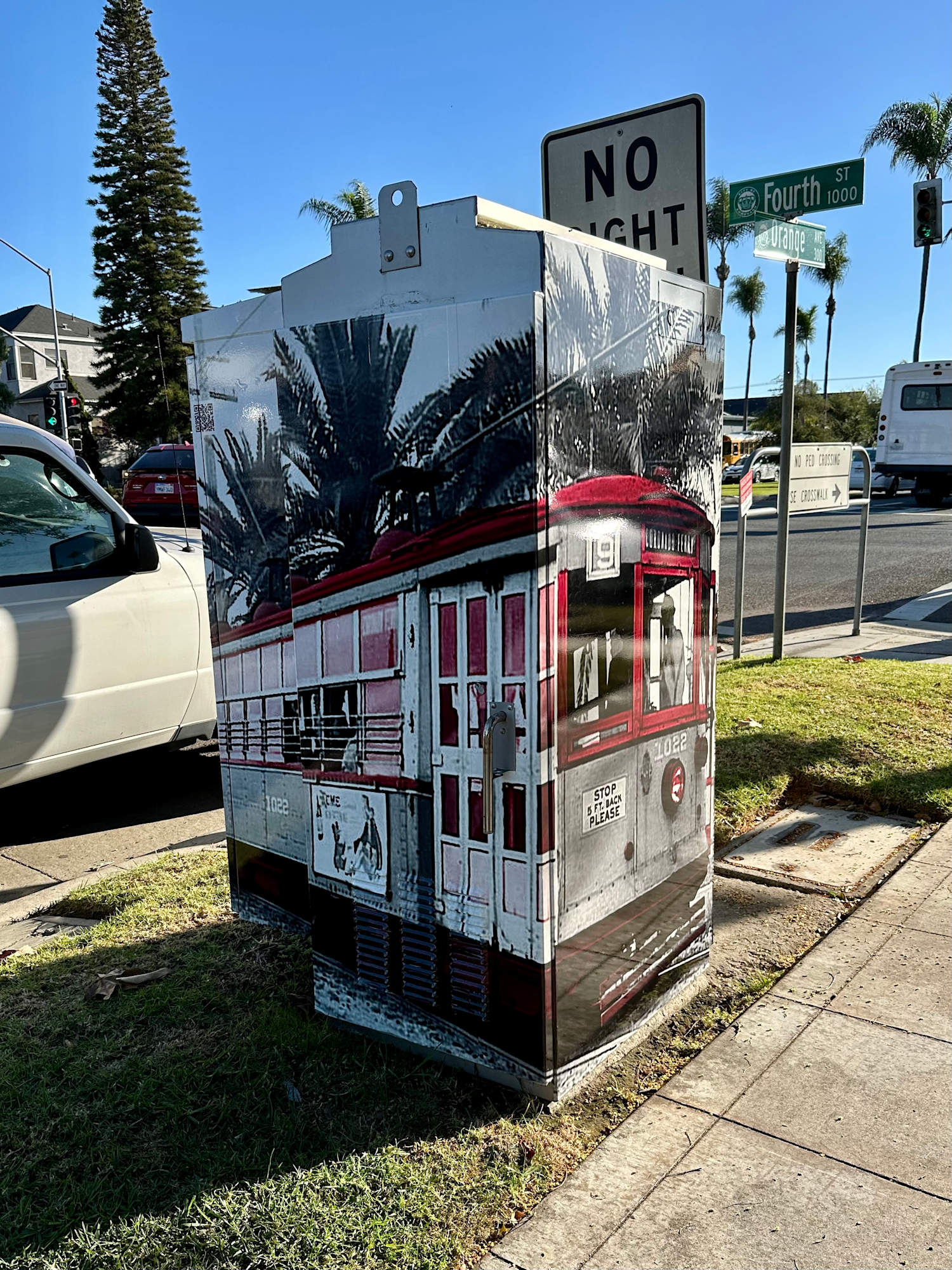 Art Outside the Box: Take 2 is the second iteration of artful wraps on the Caltrans signal boxes along Orange Avenue in Coronado. This project, a collaboration sponsored by the Coronado Cultural Arts Commission uses historic photographs featuring scenes from the surrounding area which are enhanced graphically with pops of color. The photo selection was completed by Coronado High School interns at the Coronado Historical Association (CHA) using historical images that reside in their collection, and graphics were done by Coronado School of the Arts (CoSA) interns.