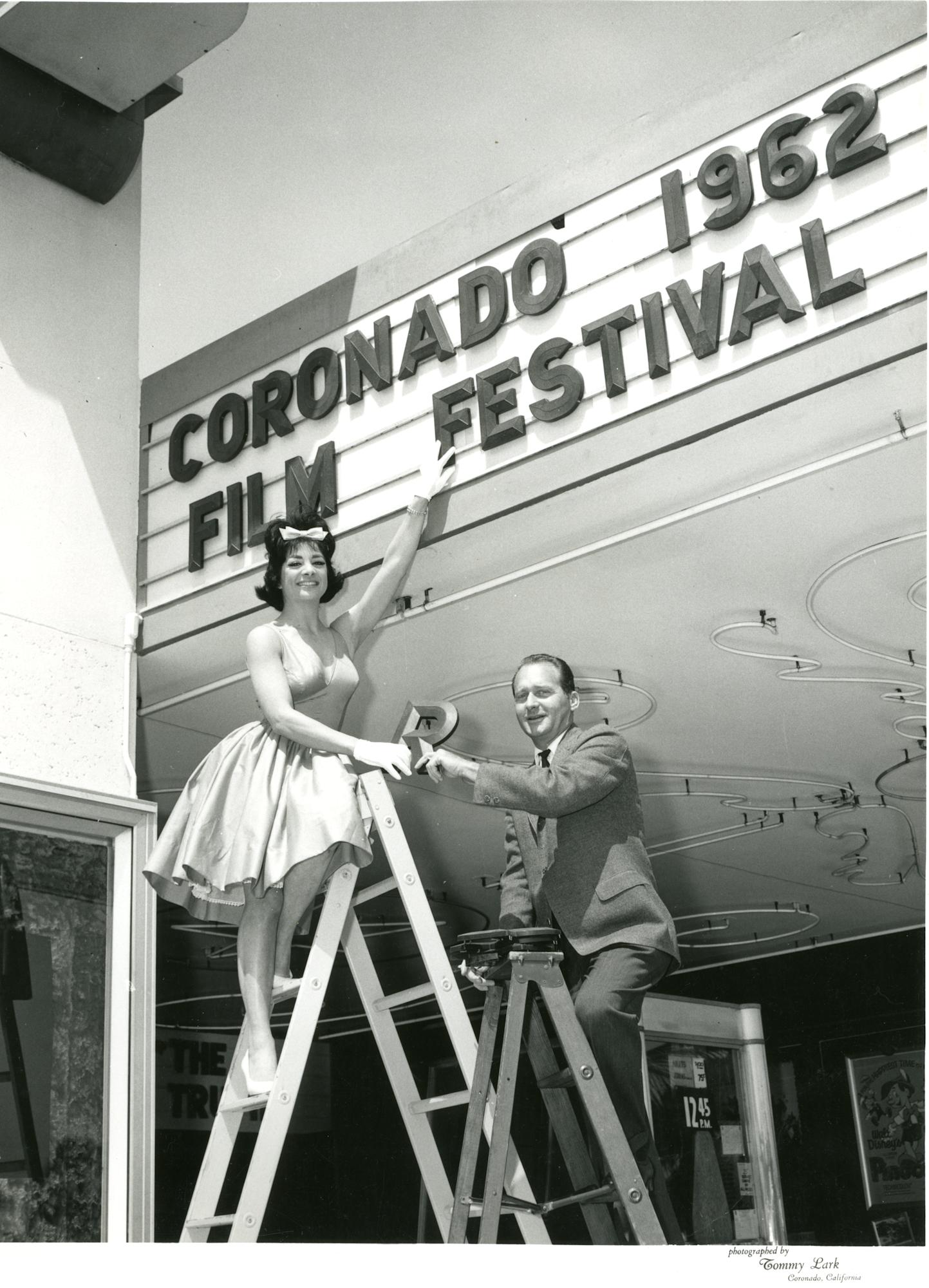 ● Northwest faces: Israeli actress Ziva Rodann and Don Larson, a local film festival manager, draw attention to Coronado's second annual film festival. 1962. Coronado Historical Association Collection. Rights Reserved.