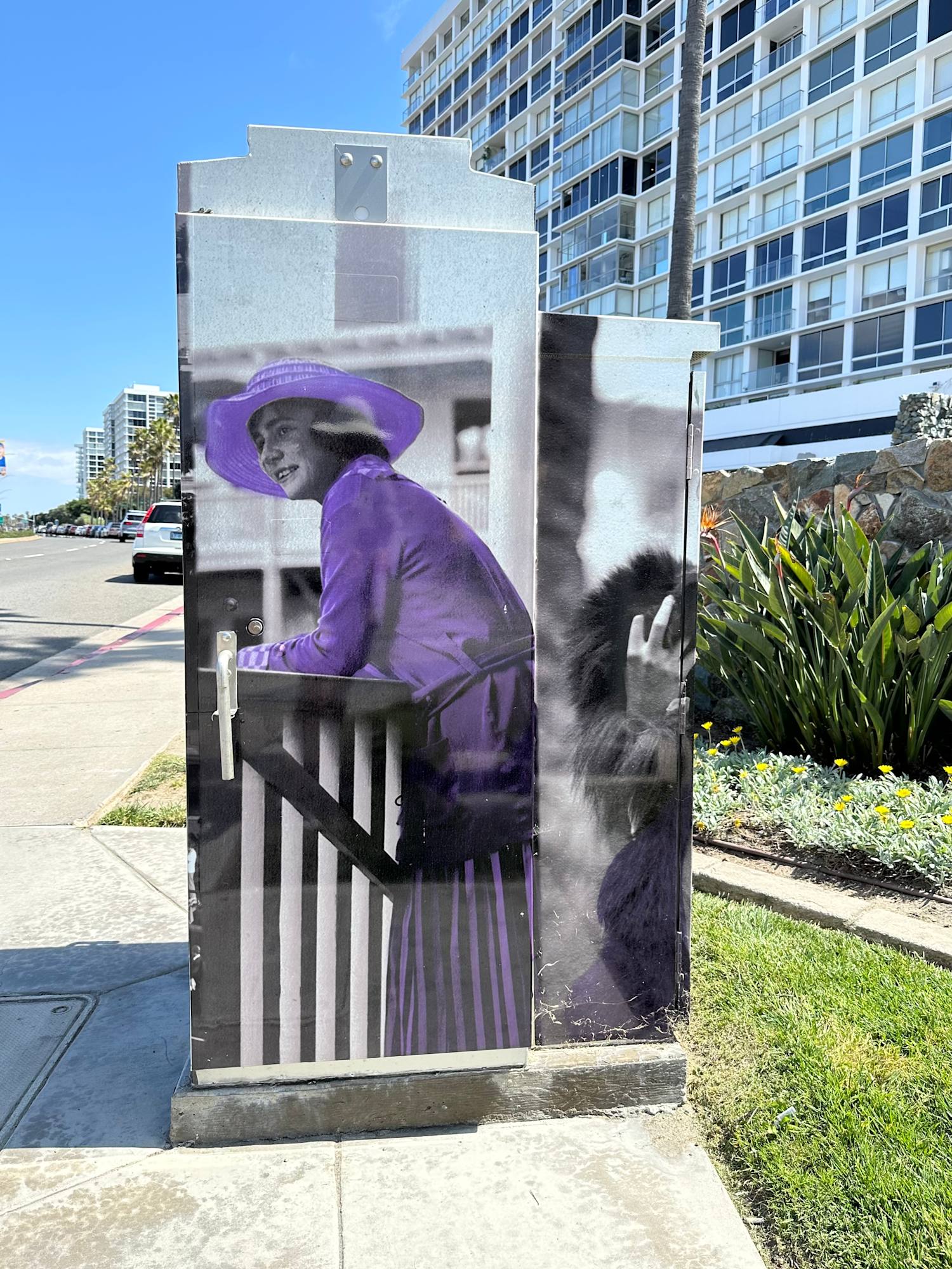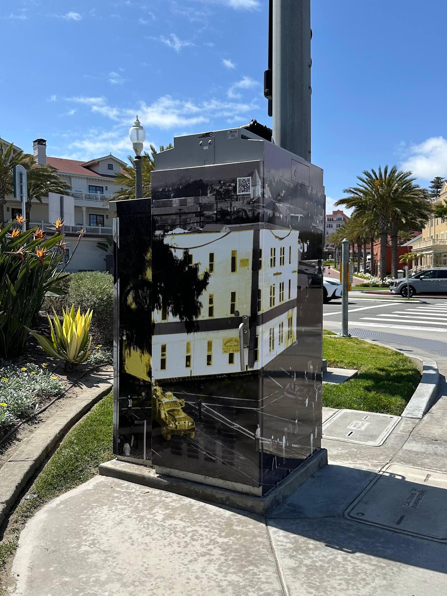 Art Outside the Box Take 2: Avenida del Sol & Orange Avenue by Sophia Hodges, Rebekka Siqueiros  Image: A woman in an early fashion shoot, titled a “Style Show” in the courtyard of the Hotel del Coronado. Date unknown. Coronado Historical Association Collection. Rights reserved.