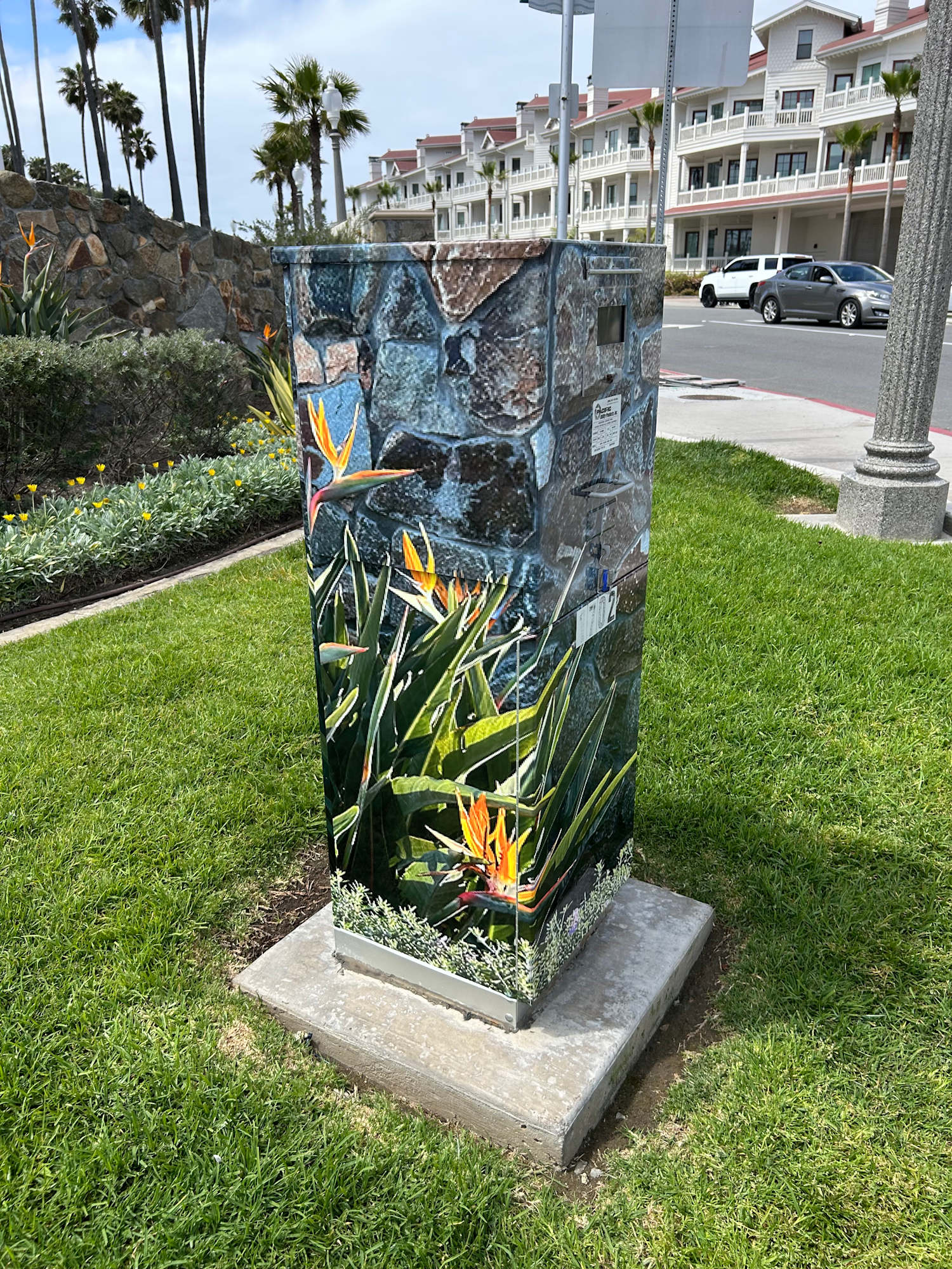 This box was wrapped so to allow to blend into the background and not detract from the entrance monument to the Coronado Shores development.