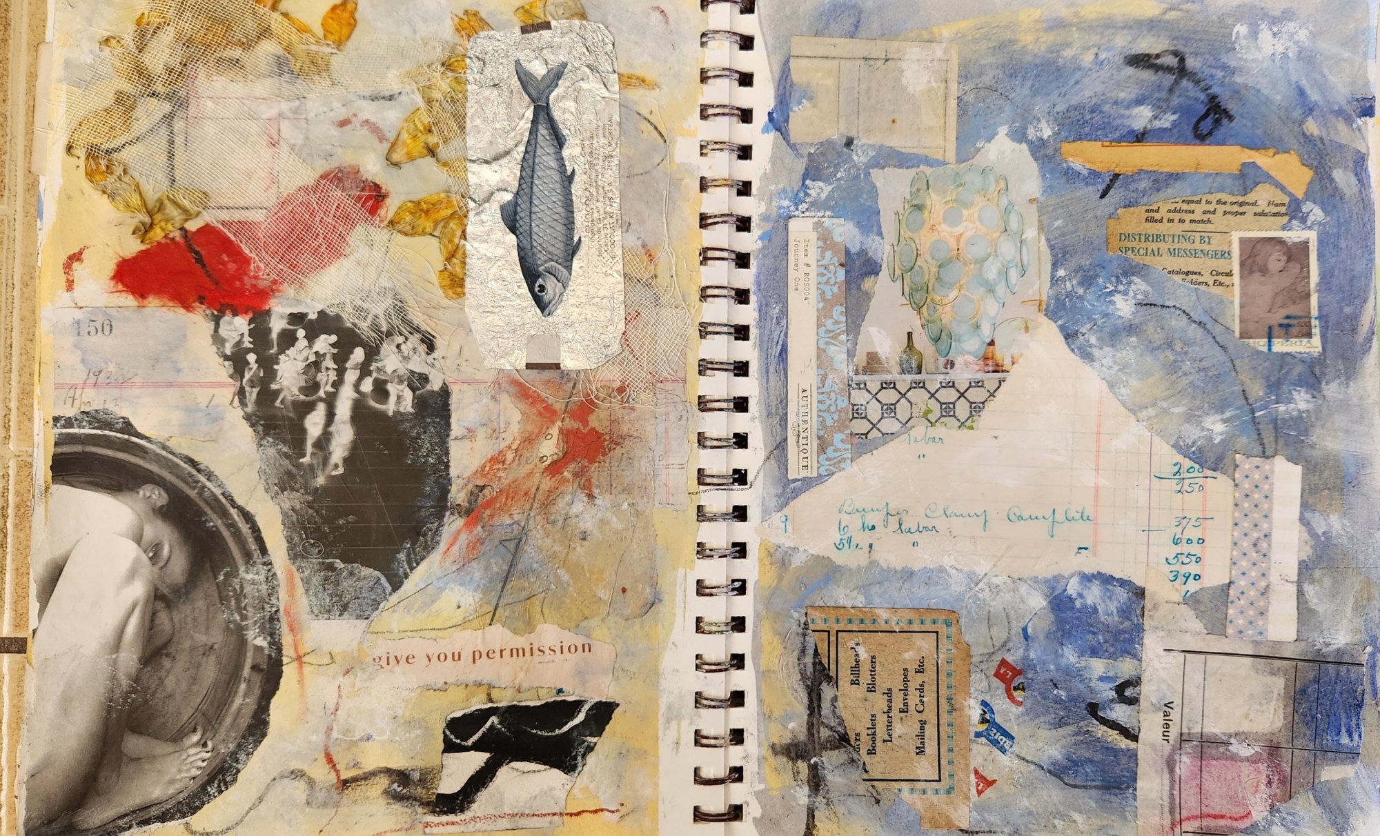 Original mixed media collage, 2-page spread in journal