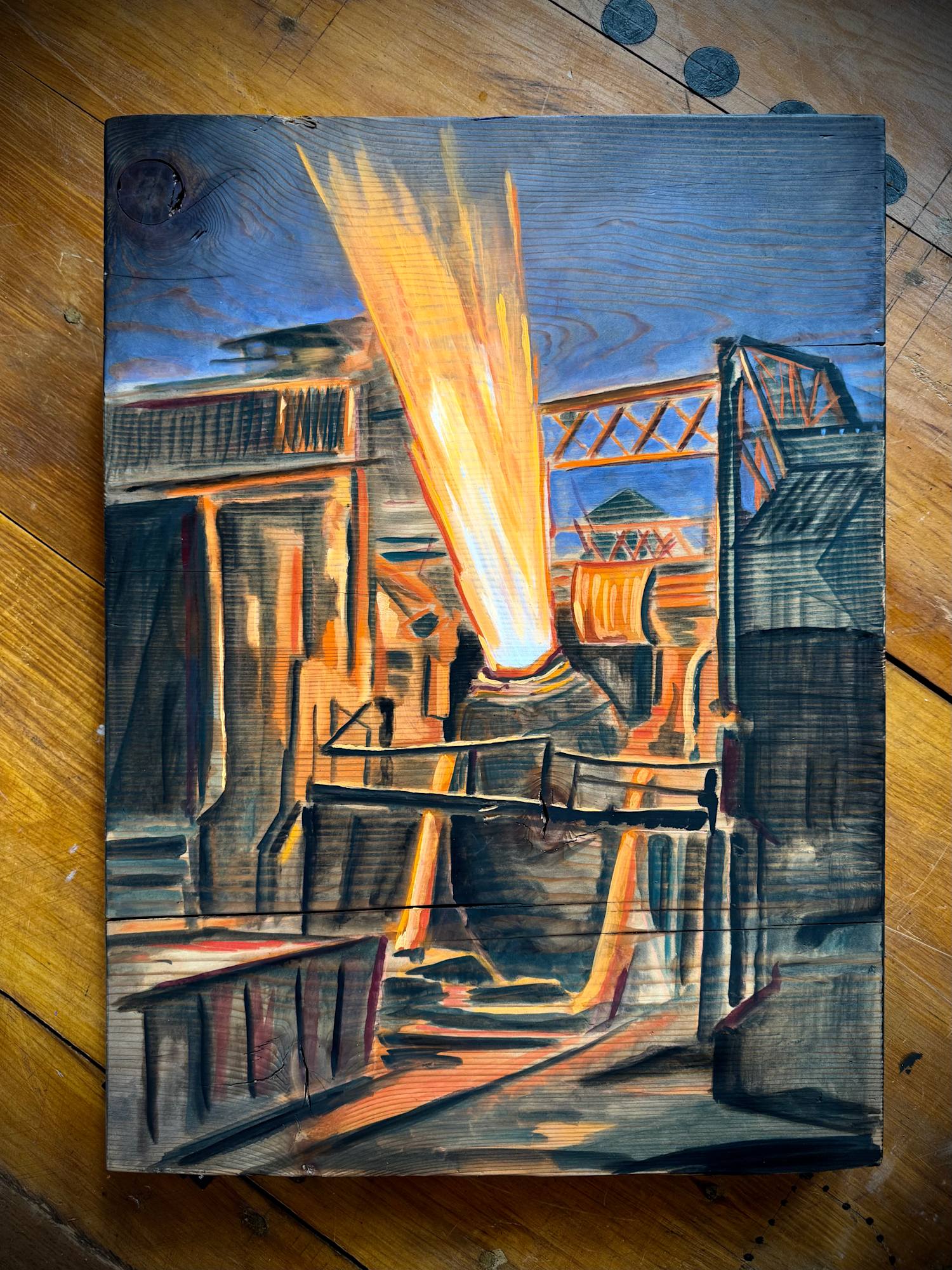 Original Oil Paintings by Cory Bonnet done inside a core box from the Patterns of Meaning Collection with a Bessemer Blow Off.