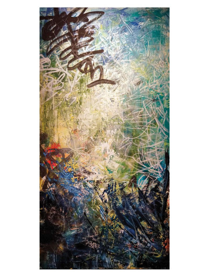 "Mia Tarducci’s Smoke and Steam, a tall, chimney-shaped abstraction, springs from the calligraphic curling of millfire clouds and the splashing fronds of molten iron and molded steel plunged into cooling baths. The palette of the work, apart from rosettes of red and an area of pale yellow, is almost a color wheel opposite of the oranges and yellows we expect from the mills and furnaces. Vulcan has become Poseidon. The element of fire creates the element of water and the recipe is written in, well, smoke and steam."