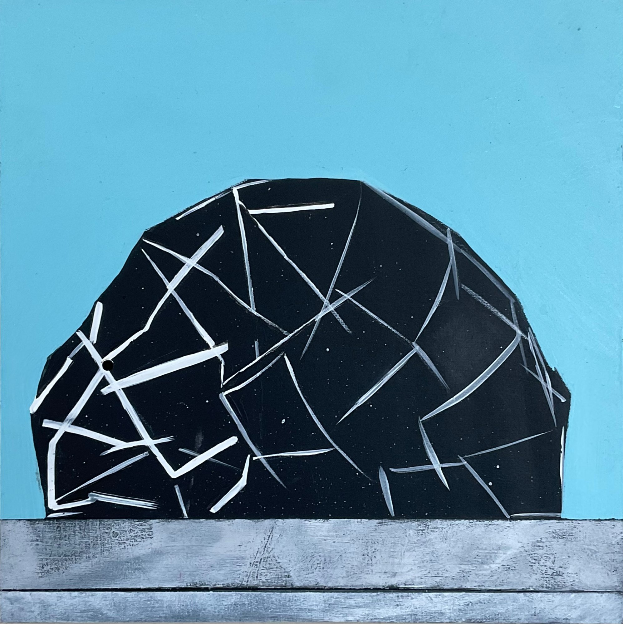 These paintings are a visual representation from a road trip I took to the small West Texas town Marfa, in November of 2020. The substrate came from a thrift store in Trinidad, Colorado. Enroute to Marfa we stopped at Drop City, an artist community that Denver’s Clark Richert helped create. Then Southward to Texas we passed so many Fences that sang to me with their repetition and imperfections. Trains were abundant and I enjoy the feeling of moving beside a train that is moving. Upon arrival, we went to see constructed objects by artist Donald Judd, a catalyst for the art scene there. The landscape of tumbleweeds, Cactus, adobe houses, repurposed everything, airstream trailers, dirt and rocks became our home for two weeks as we completed our artist residency at Rule Gallery Marfa. Then to close the magical time of gallerista-ing, making art & viewing art, we headed to the Mystery Lights to end the trip.