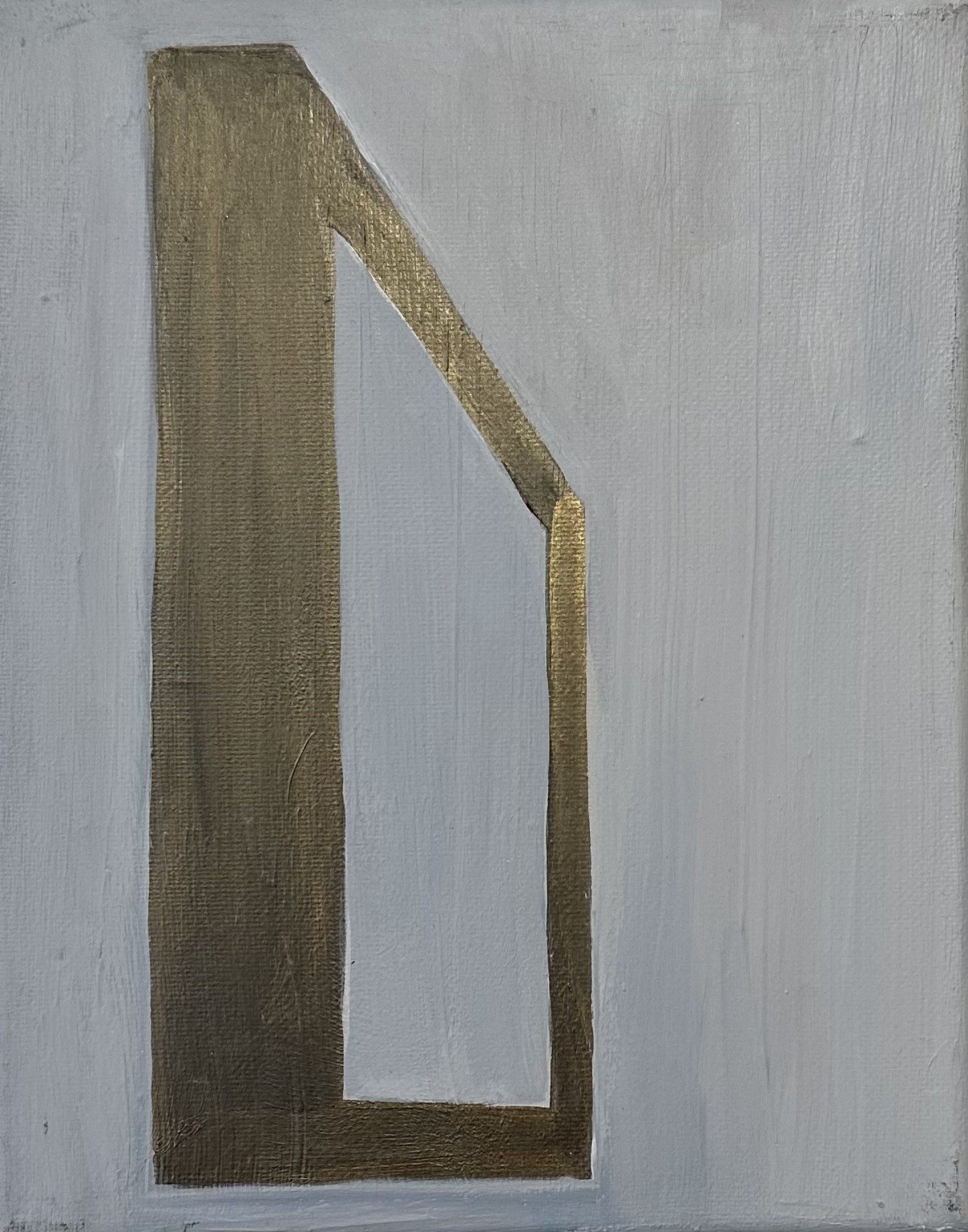 In retrospect, I believe the meaning of the palette colors dark blue, gold and white represent place of the artist at creation time. I would say the dark blue or Payne’s gray represents darkness or sadness. Gold represents light, both inner light or self and outer light - universal. The white represents peace and being present. All the variations these colors make represent contrast.