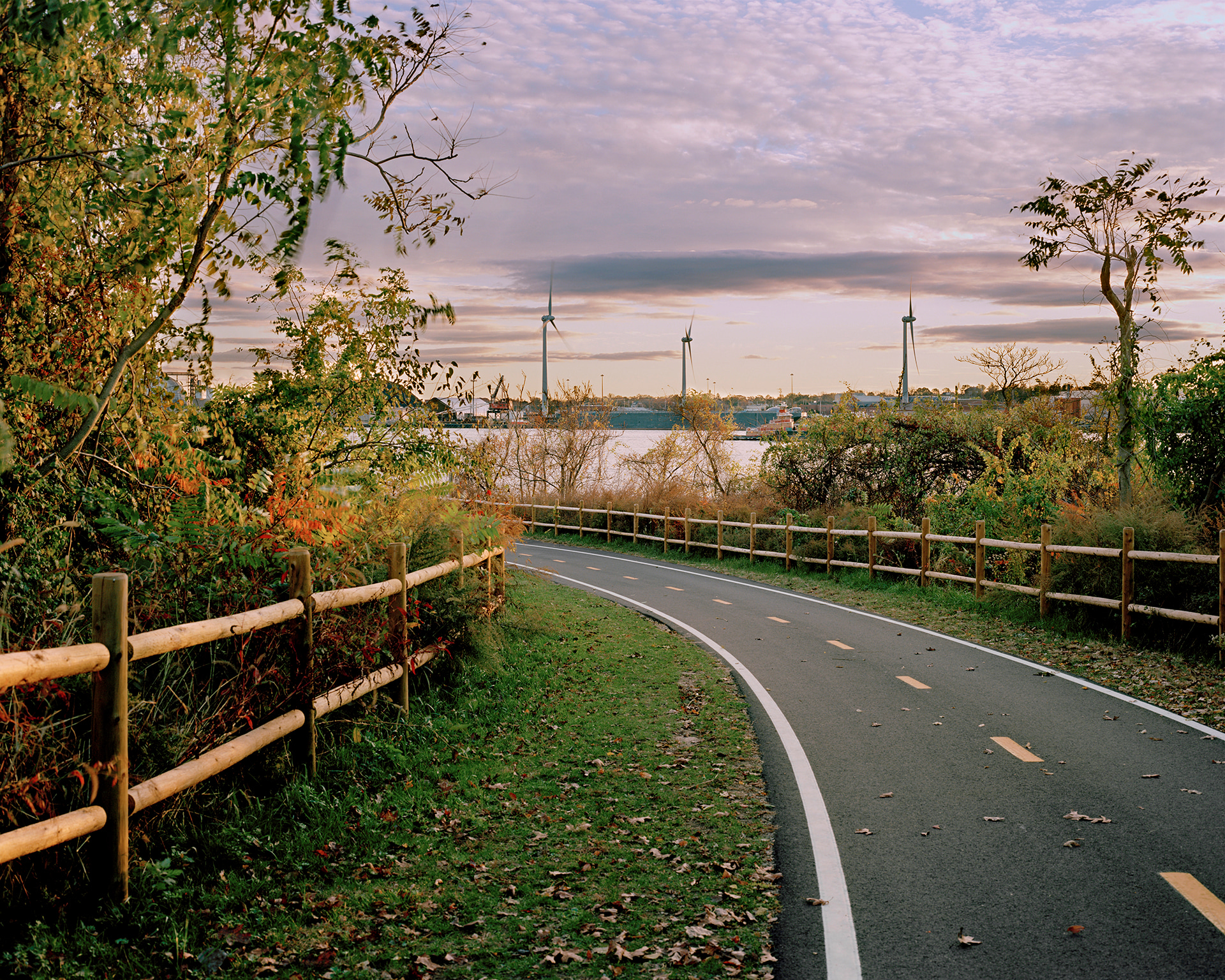 For several years I have been photographing the emergence of wind turbines throughout the New England landscape. The resulting series of photographs, titled Urban Turbines, depict cliché images of the built landscape and architecture of this region with these new, abrupt structures.