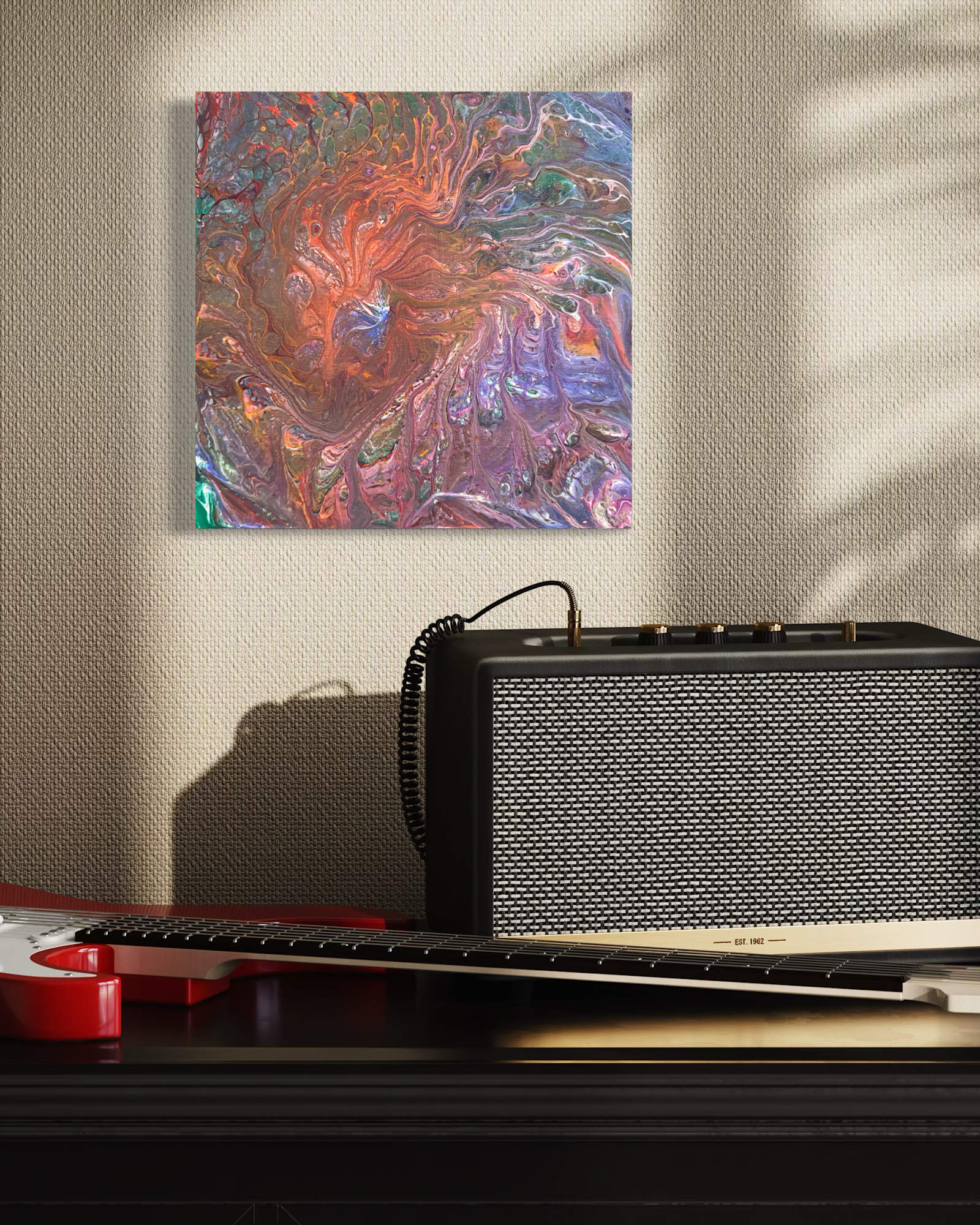 Nebula Awakening is a cosmic dance of color and motion, where deep crimson and shadowy purples swirl together like a newborn galaxy taking shape. Hints of glowing blue and emerald green emerge from the darkness, evoking the birth of stars within a celestial storm. This piece captures the mystery and wonder of the universe, drawing the viewer into the infinite depths of space where energy and creation intertwine in an eternal awakening.