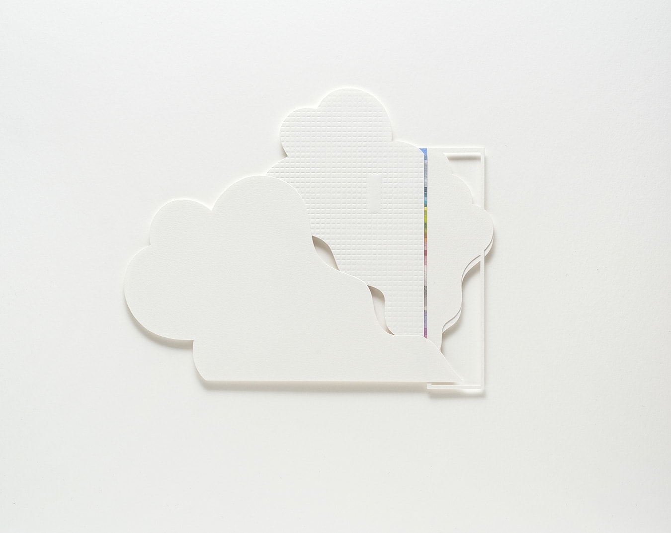 A window structure is beautifully shrouded in voluminous clouds with embossed pattern and a view corridor of colour beaming through.