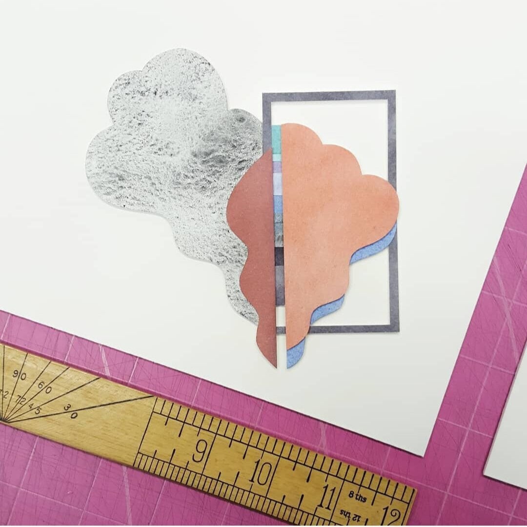 A concrete geometric window and stormy sky give way to a burst of warmth, with a view corridor to a band of cool colours. This watercolour paper sculpture’s title was inspired by a lyric in the Beatles tune, Tomorrow Never Knows.