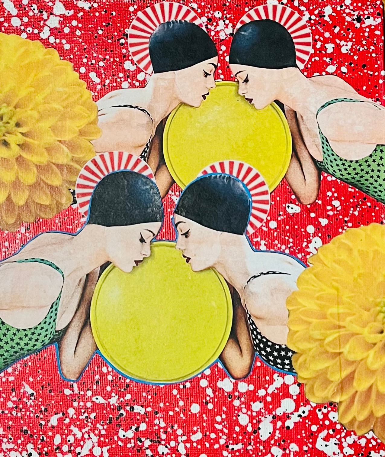 Original found altered images analog collage artwork by Artist Cristina Sayers; 8”x10”on flat cotton canvas board, Unframed, 2023.