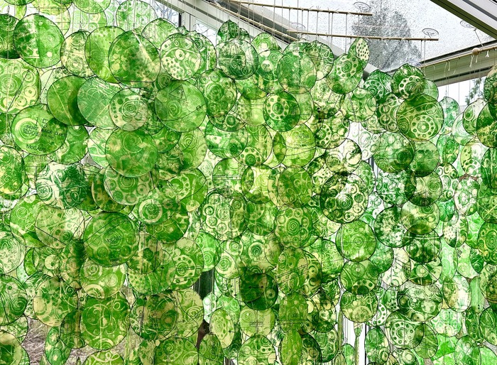 “Biology Rising” began as a visual art piece created by Julie Anderson Bailey. It is an exploration of the volvox algae daughter colonies that grow inside their mother cells in freshwater environments. They survive through an evolutionary practice of symbiotic support. The colony spins in unison toward light, pushing the collective whole toward the surface for photosynthesis, to ensure individual and collective survival. This natural symbiotic relationship is a powerful lesson in community and the principle of interdependence, highlighting how each living thing within a natural system contributes to the health and balance of that system.