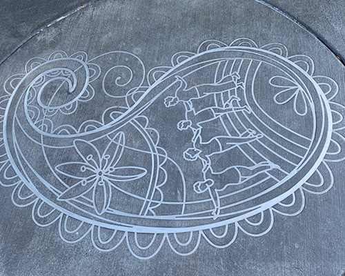 The artwork celebrates several aspects of the Center’s identity. Campbell’s location on a rare plot of preserved camas prairie is reflected in images of local flora and fauna. These are intermingled with concrete references to the vital day-to-day activities that go on at the community center. Swirling fields of playfully psychedelic imagery are knitted together within a latticework of ornate, paisley linework, welcoming visitors to the Campbell Center.