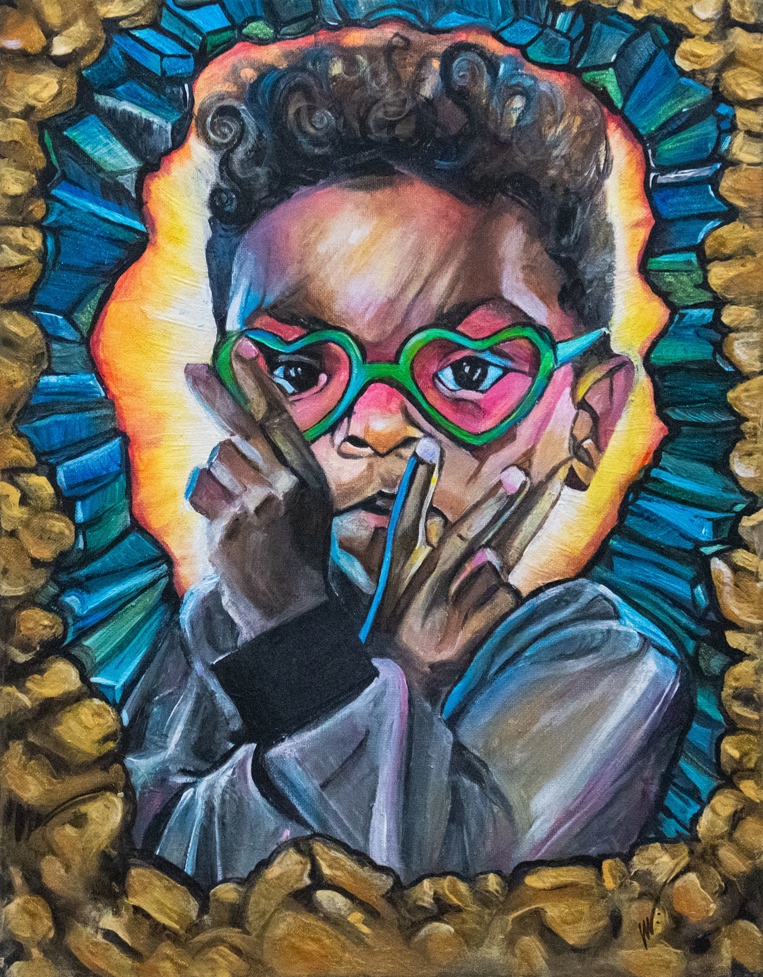 Vanessa's son wore a pair of heart-framed shades when he began throwing up deuces. After taking the candid photo, she was instantly inclined to capture it in paint.