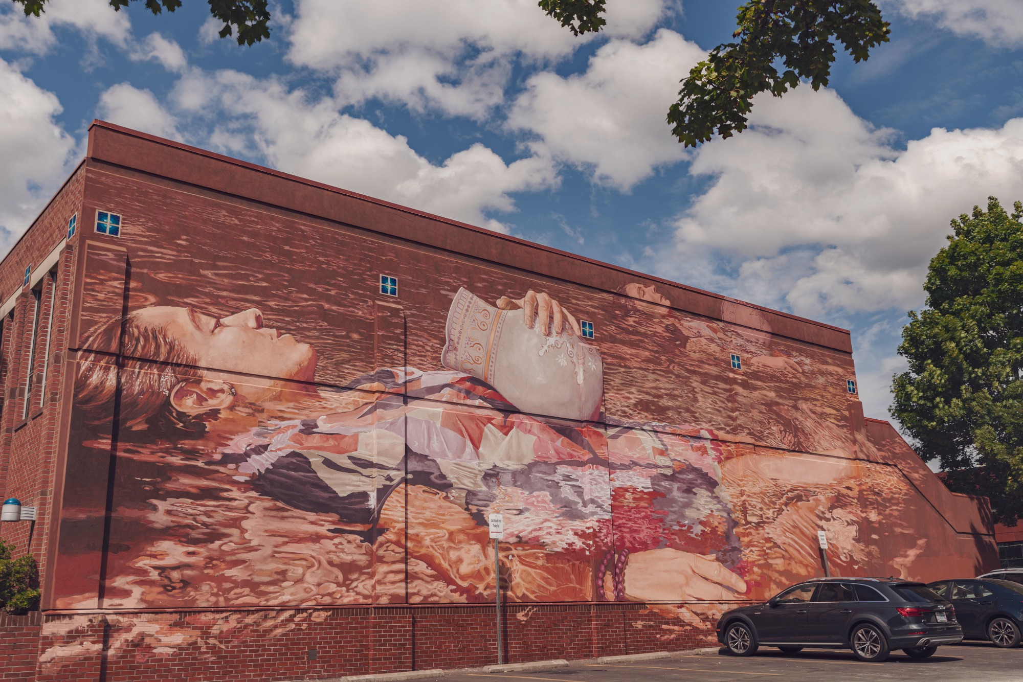 Magee’s mural on the side of the Eugene Area Chamber of Commerce is sure to spark reaction. In his self-professed style of “magical realism,” the girl floating with an empty pitcher depicts the “Feast before the Flood.” It’s both a commentary on climate change as well as a visually striking mural Magee wants people to look up and enjoy.
