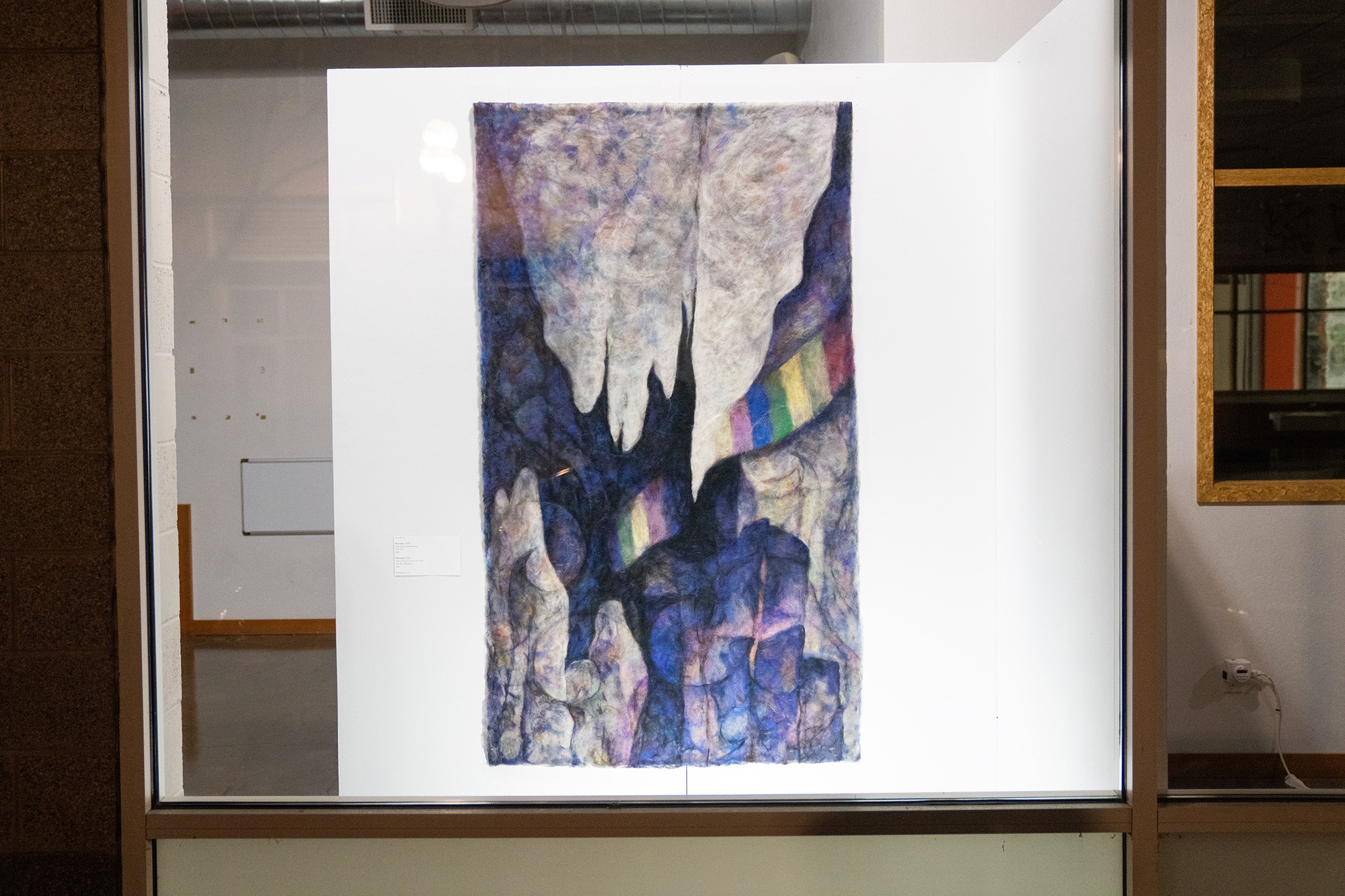 The piece investigates the possibilities of an abstract language of form and the materiality of painting with its relationship with fibers. I developed my own felting technique by using felting wool and iron pressing with repeated layering. I call this technique “felt painting,” which creates a pastel-like texture and image. My methods and processes reveal internal and external landscapes from the past with embedded emotions.