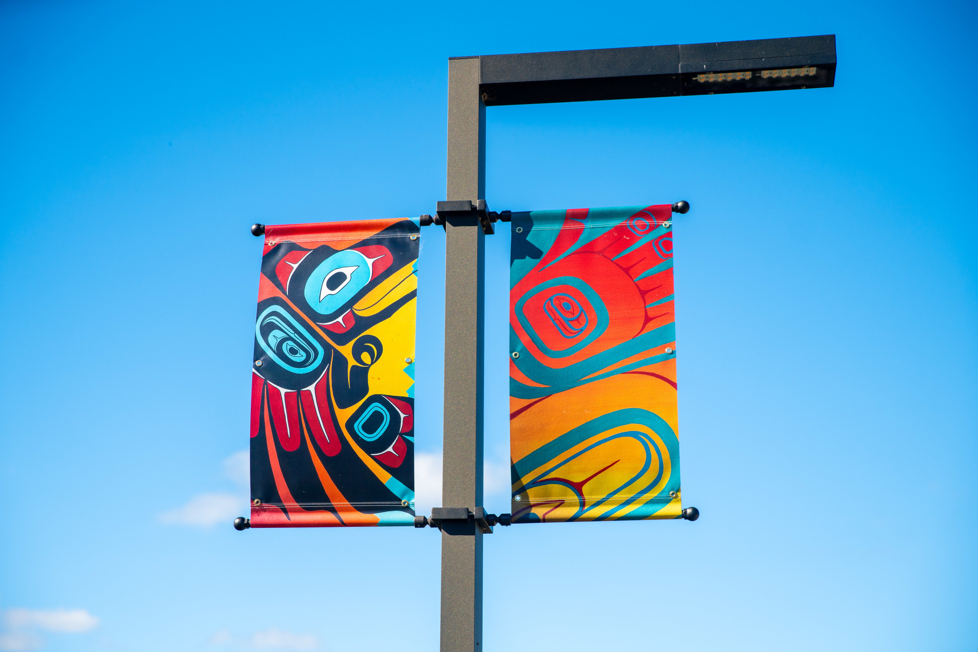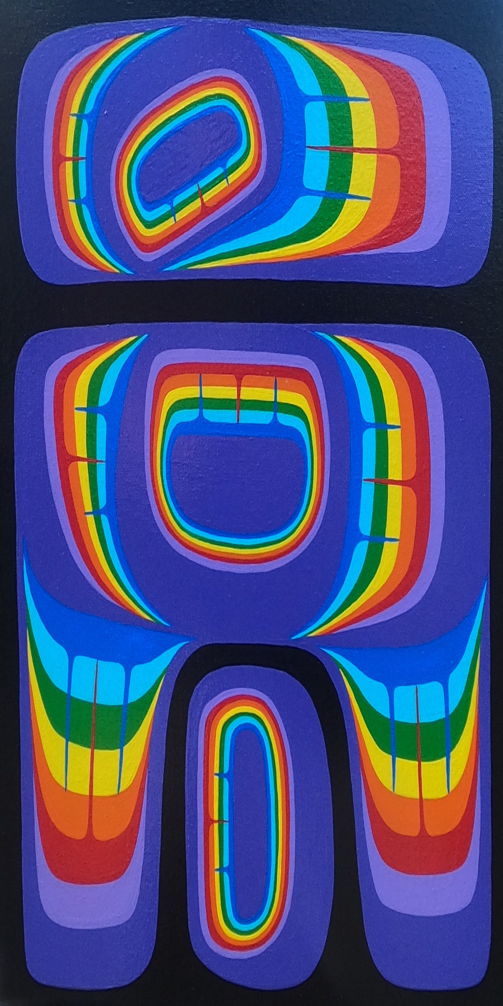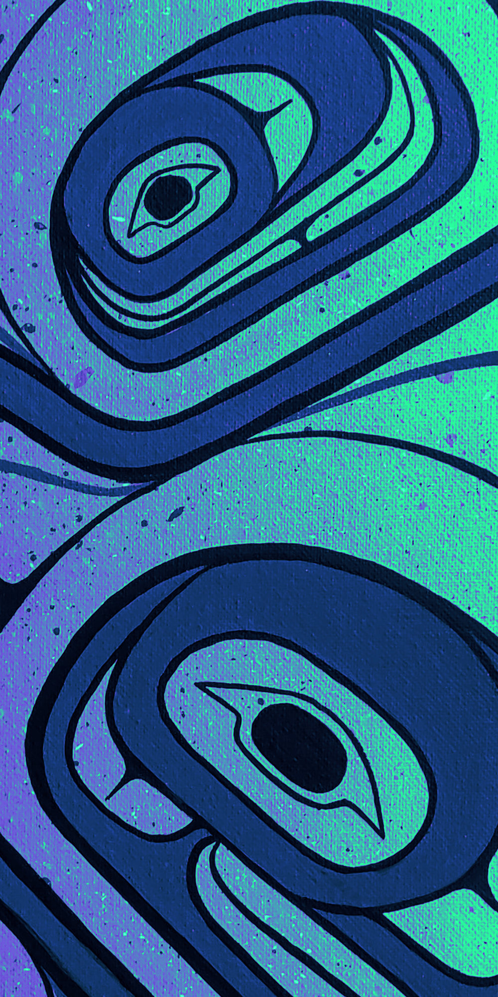 This series of digital images has been collected from my archives of created works from the last four years. I love to use bright colors in my paintings, murals and digital designs. My hope is that passersby will be captivated by the formline, abstract shapes and creatures depicted in my art.