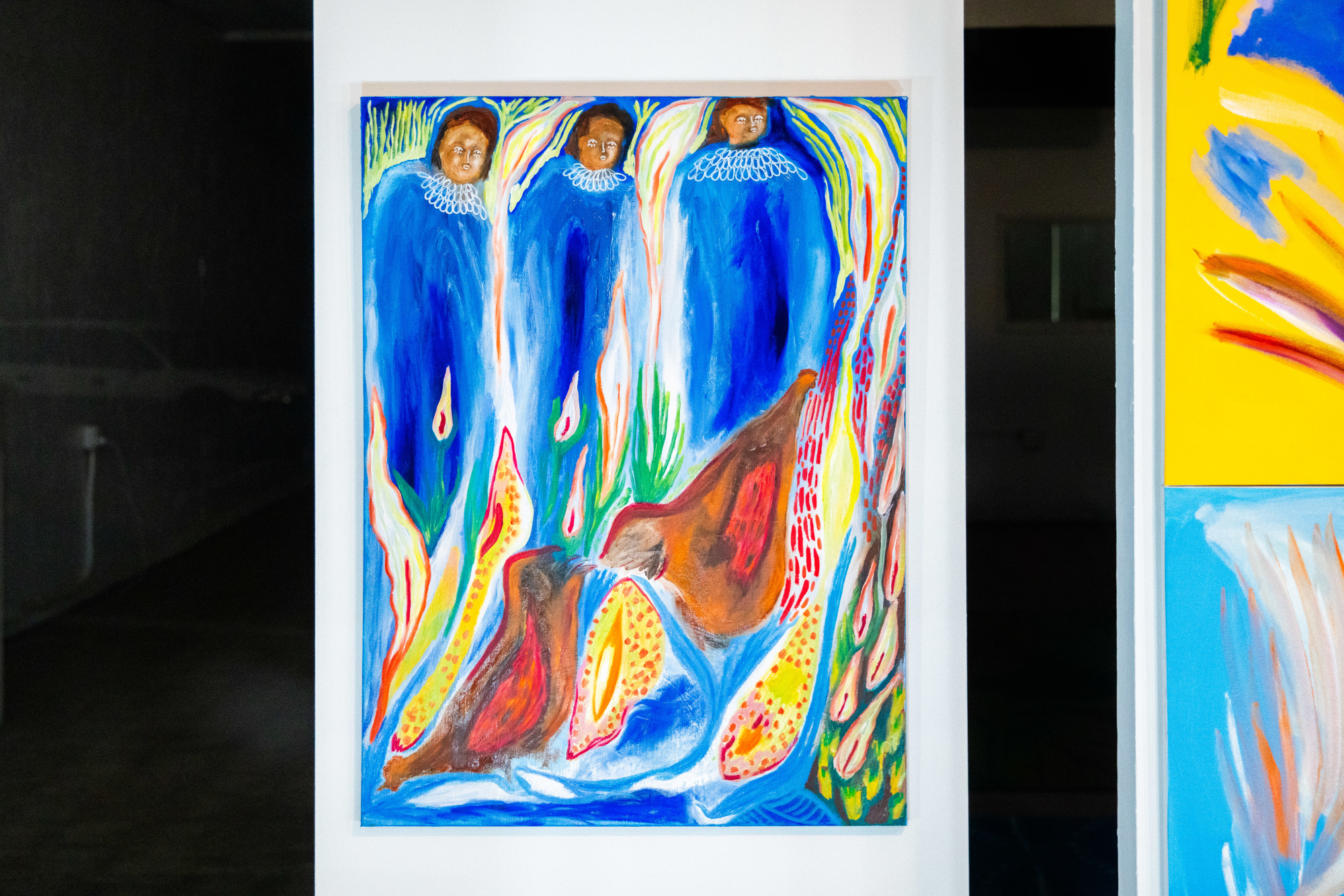 The depiction of nature has concerned artists since the beginning of artistic creation. How do we connect and reconnect with nature according to what we can see and what is outside of our realm of vision, the micro and macroscopic world, how nature is perceived in our dreams, how is distorted by rain, fire, mist, how all life is happening in front of the beholder. This is a showing to see nature as if it is perceived by a child playing outside in the rain when all is muddy, when all life is drinking and thriving in the backyard. If you pay attention and look closely, nature doesn’t ever leave you alone; it's always there, humming, chanting, growing. In the middle of it, I introduce the great practitioners of the attentive gaze. My primeval beings, ghosts of my past and present, act like a child who takes their first look at the world. Outside, in the backyard, there is a seed of dwellers.