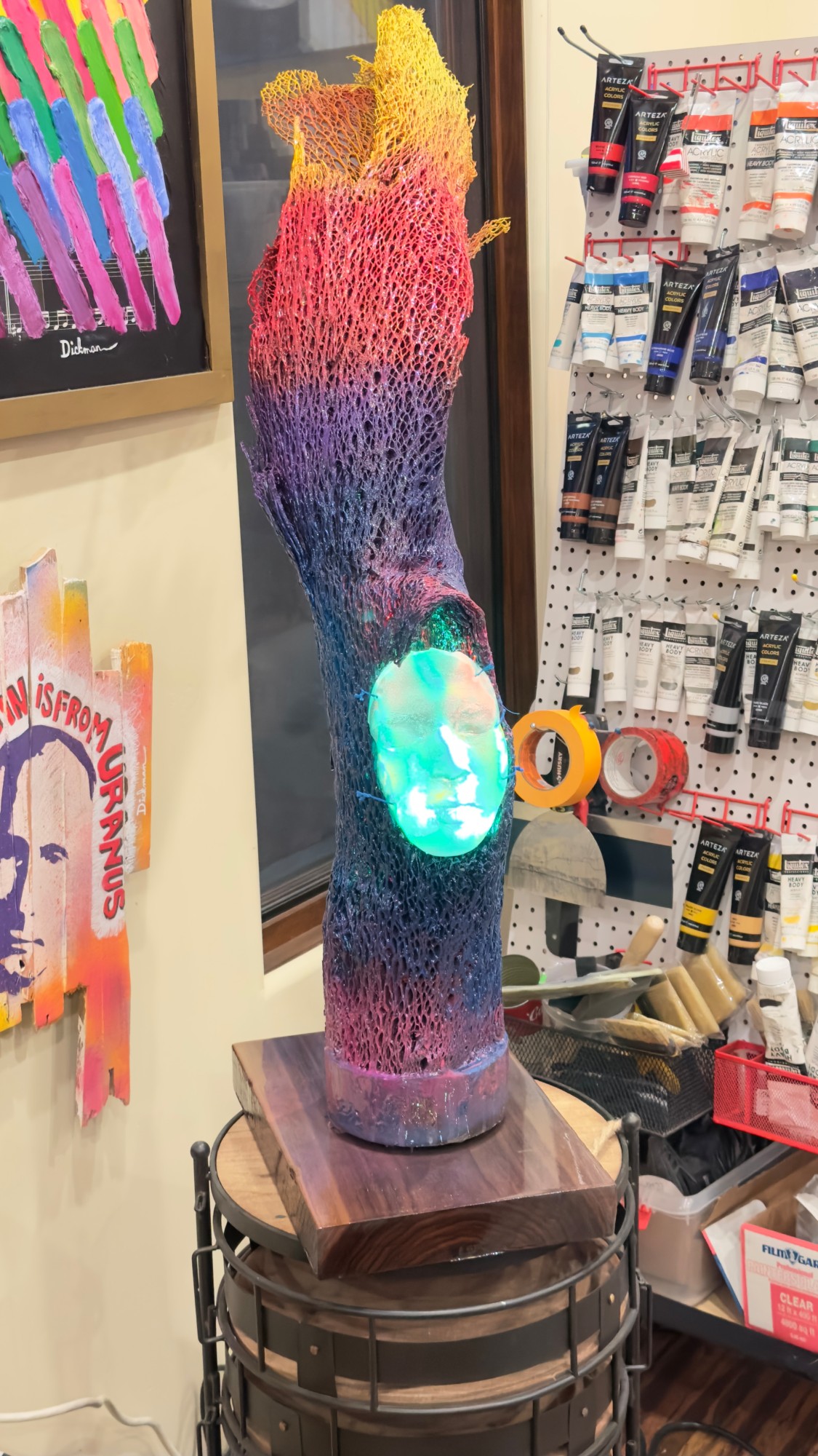 ART RESIN & PRICKLY PEAR CACTUS SKELETON SCULPTURE, LIGHTED