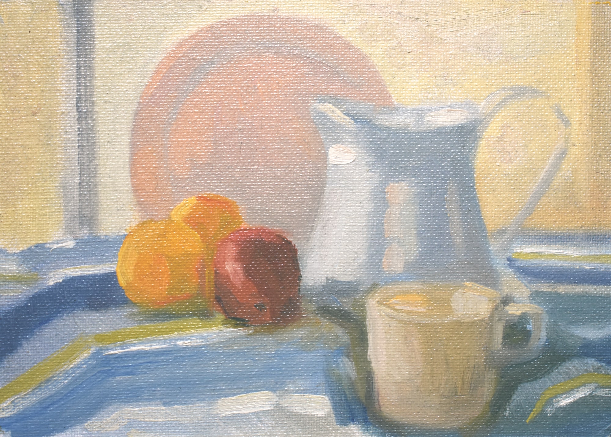 An arrangement of some mid-nineteenth century cafeteria items make this kitchen scene come alive. Painted on site in the cafeteria at the Lazy W Ranch in the hills off of Ortega Highway. The ranch was established sometime in the 1940's.