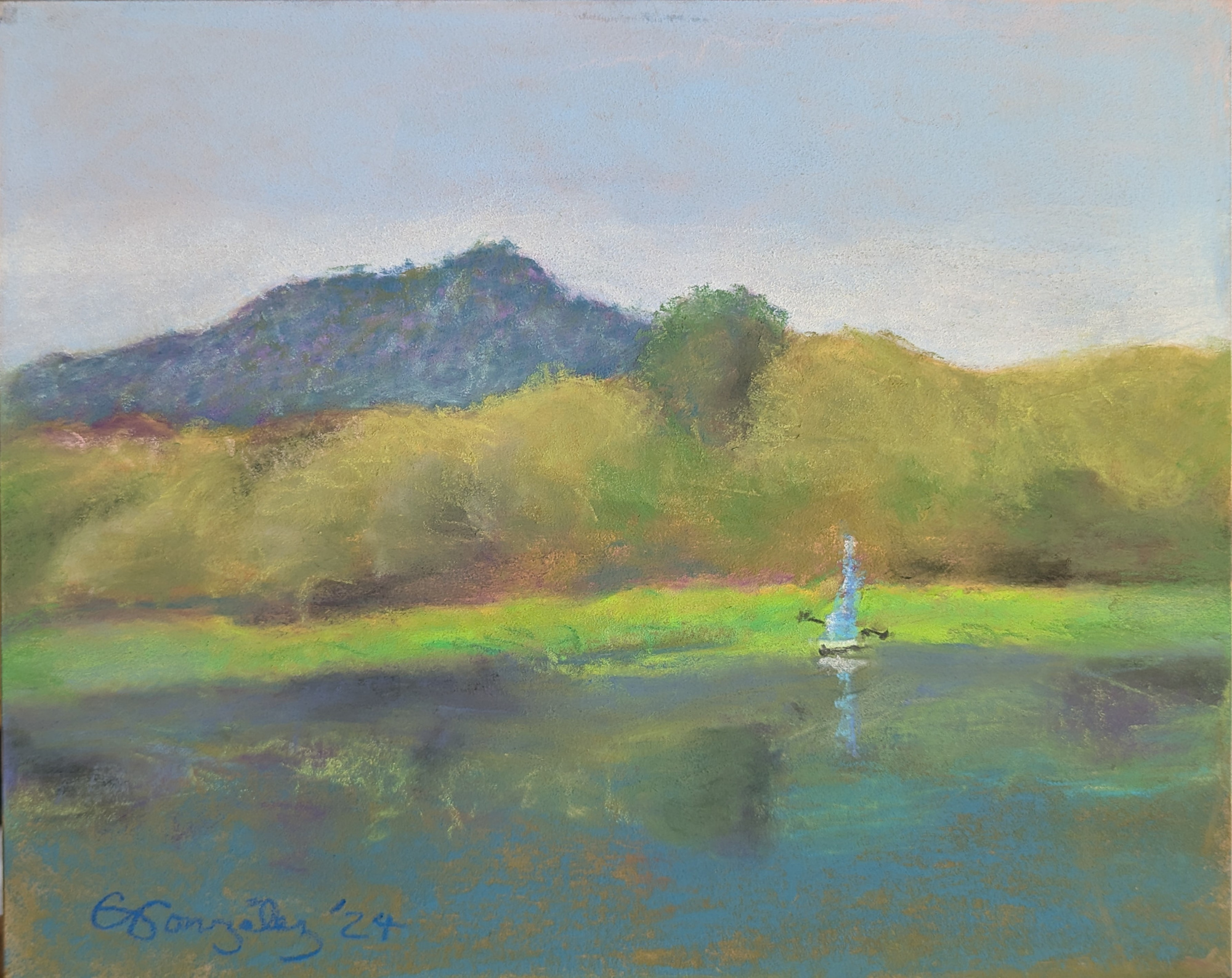 MessageA sketch painting in pastel of the lake view from Riverfront Park, Windsor, CA
