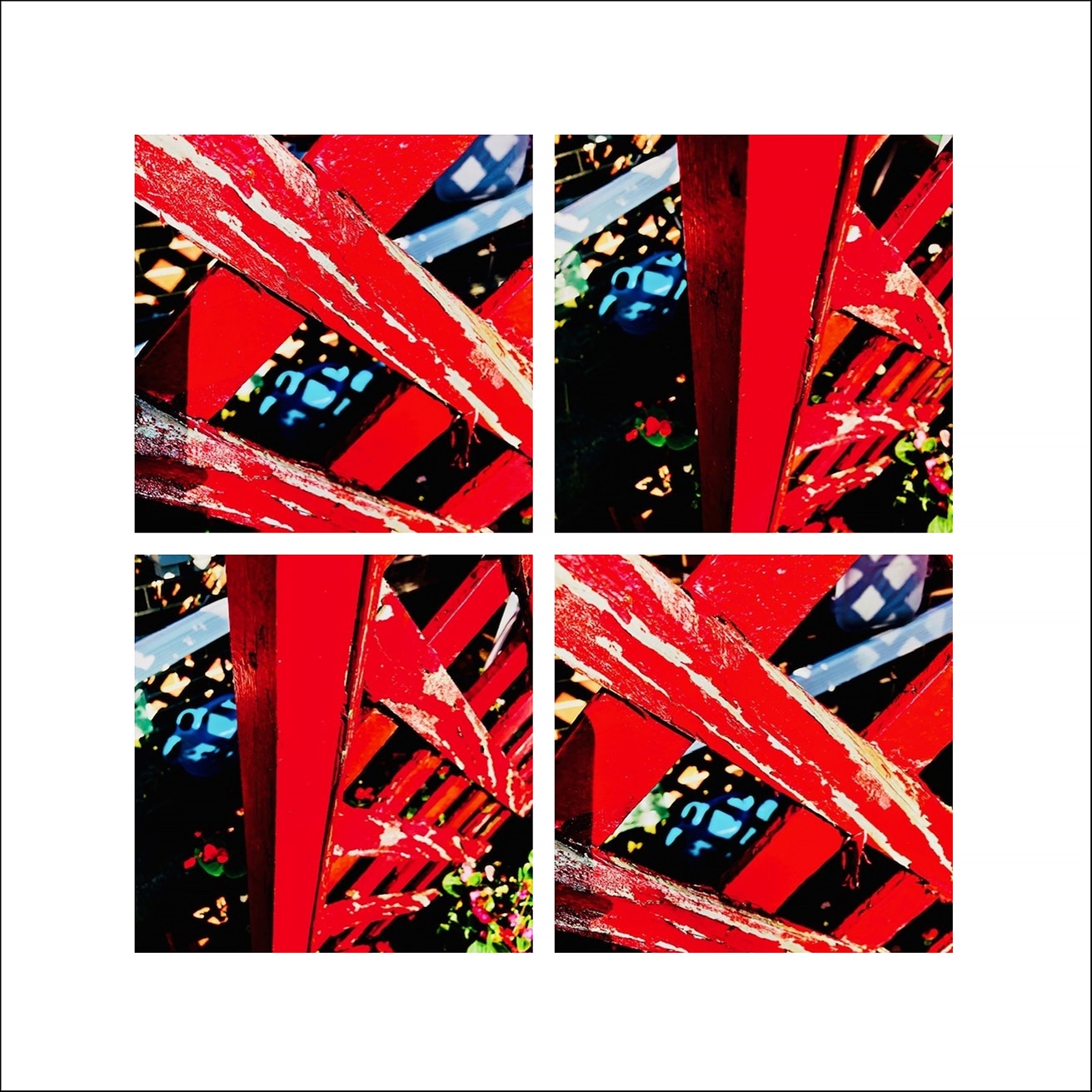 Photo collage with fencing in the shape of the letter X
